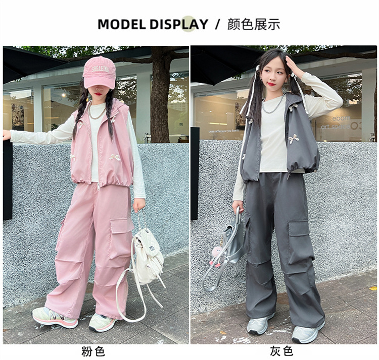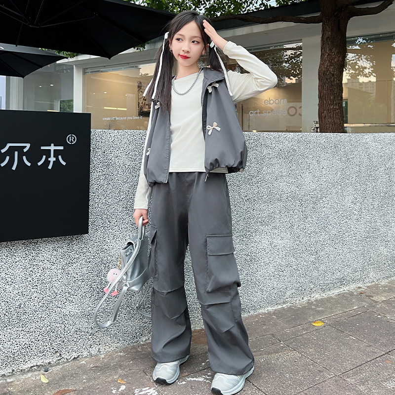 소녀 양복 조끼 바지 바지 세트 어린이 가을 서양식 긴팔 바닥 셔츠 큰 어린이 활 3 피스 세트 패션스토어 가기