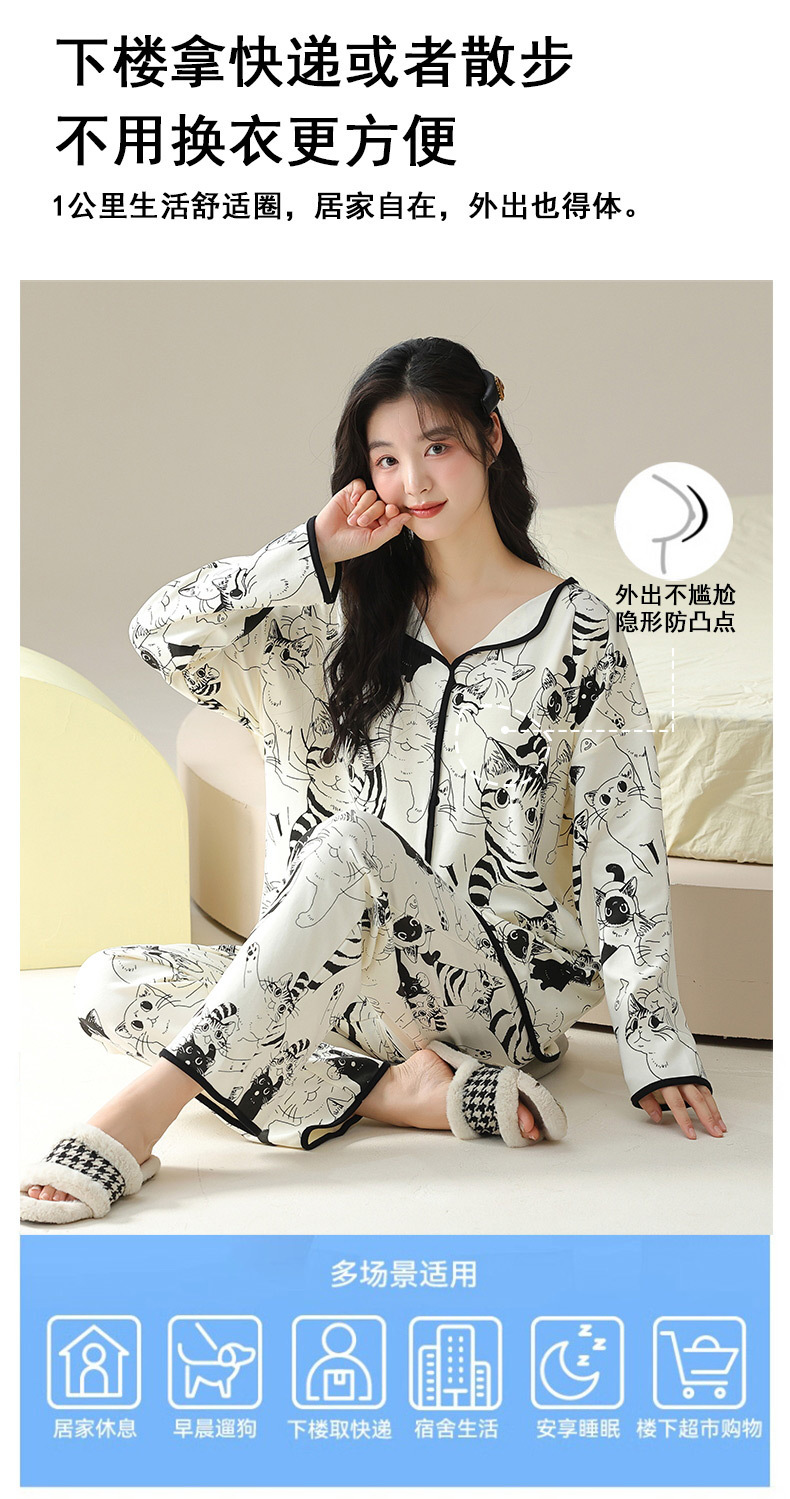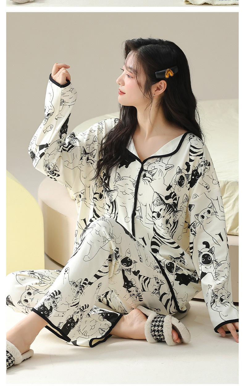 가슴 패드와 인스 타 그램 스타일 잠옷 여성의 봄과 가을 모달 긴 소매 두 조각 세트 만화 귀여운 여성의 느슨한 홈 옷스토어 가기
