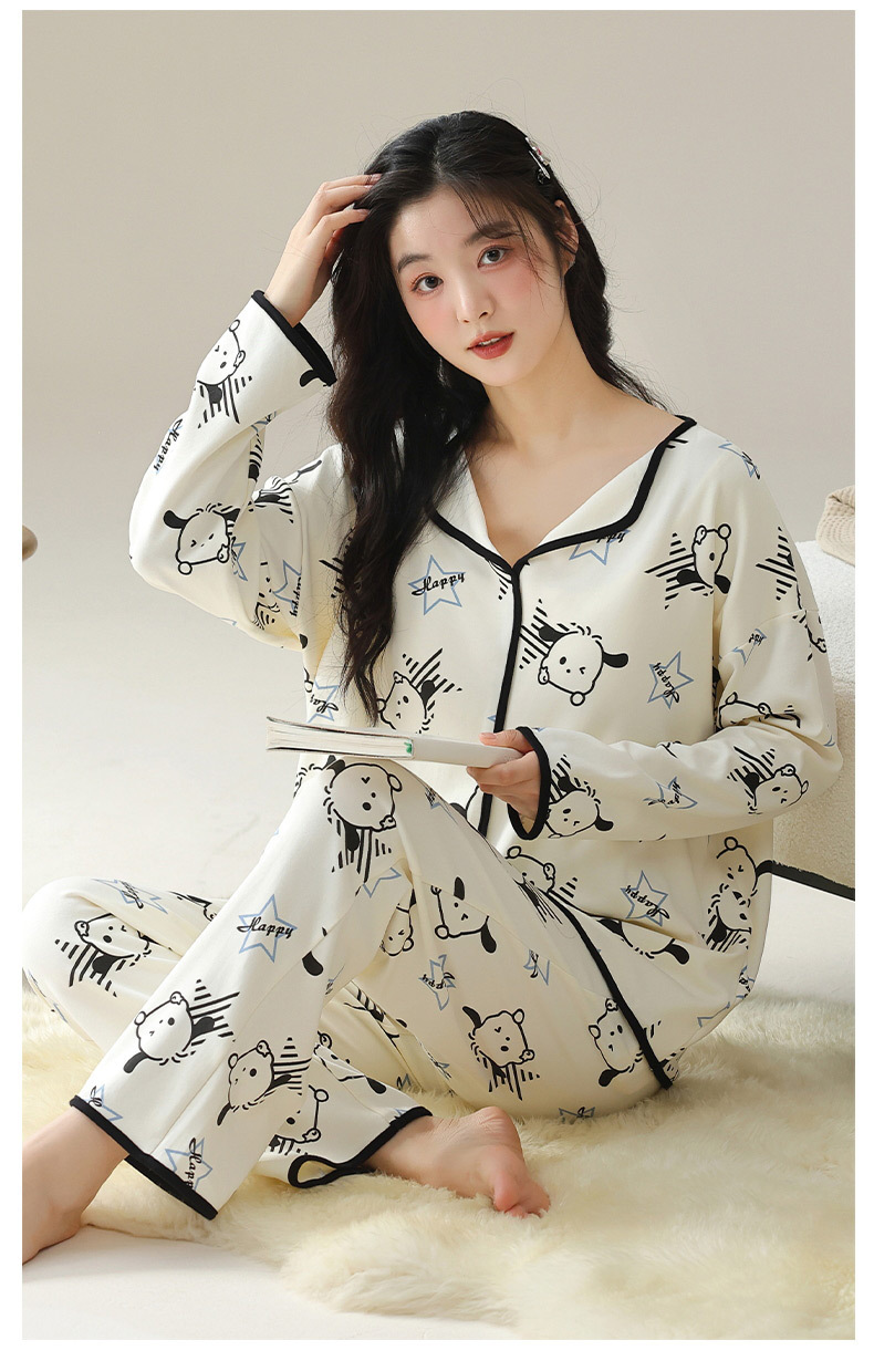 가슴 패드와 인스 타 그램 스타일 잠옷 여성의 봄과 가을 모달 긴 소매 두 조각 세트 만화 귀여운 여성의 느슨한 홈 옷