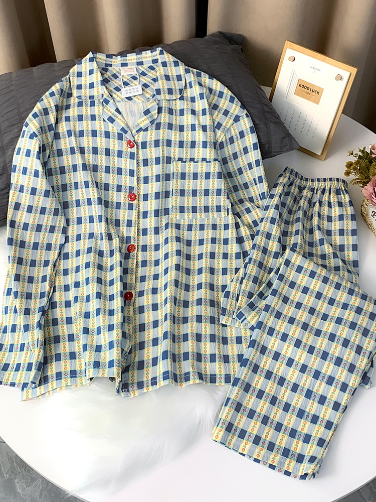 새로운 잠옷 여성의 봄과 가을 얇은 구름 면 긴 소매 바지 만화 느슨한 홈 옷 국경 도매스토어 가기