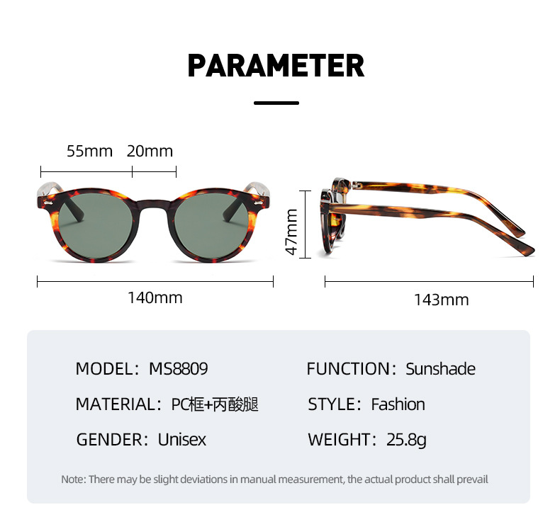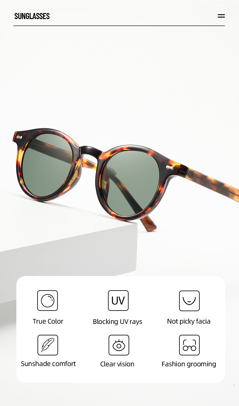 새로운 스타일 프로피오닉 다리 쌀 네일 라운드 프레임 선글라스 복고풍 맞춤형 트렌디 남성 선글라스 여성 인터넷 기념 한국 스타일 햇빛 안경