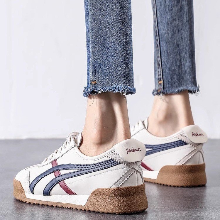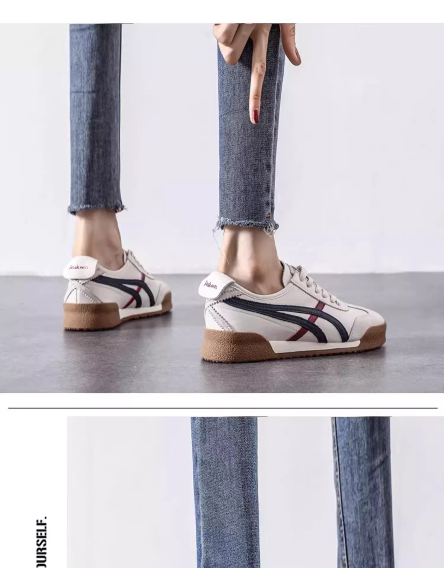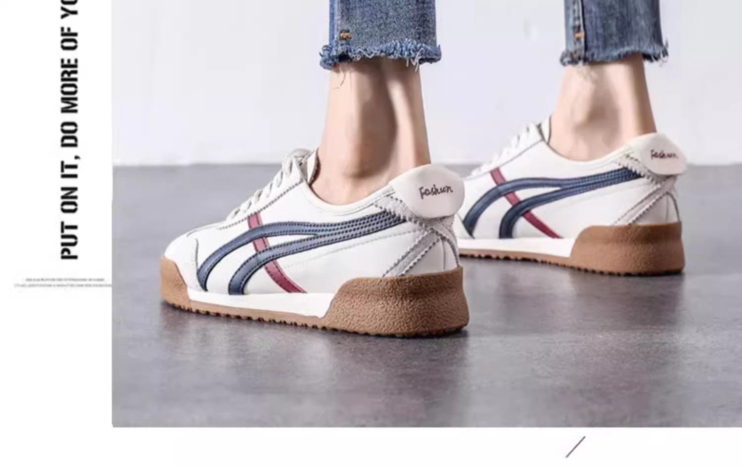 포레스트 검프 신발 여성 2024 폭발성 빈티지 독일 훈련 신발 소프트 가죽 올 매치 편안한 화이트 신발 캐주얼 스포츠 플랫 싱글 레이어 신발