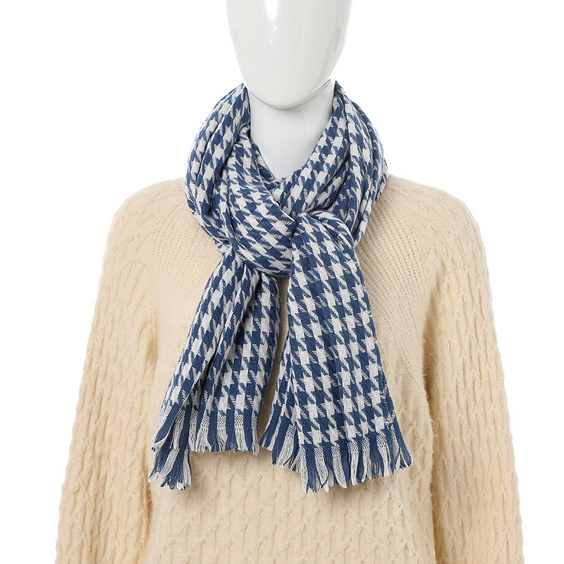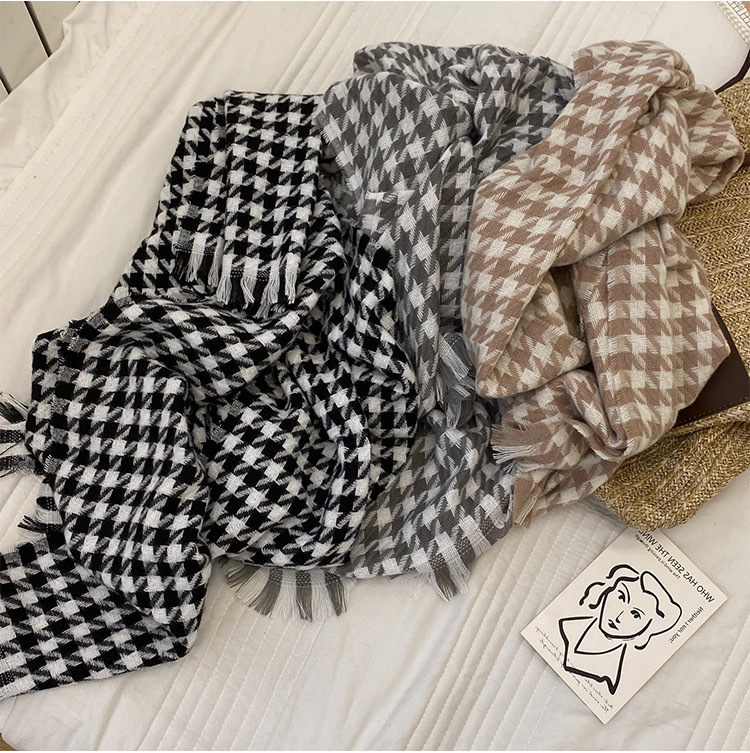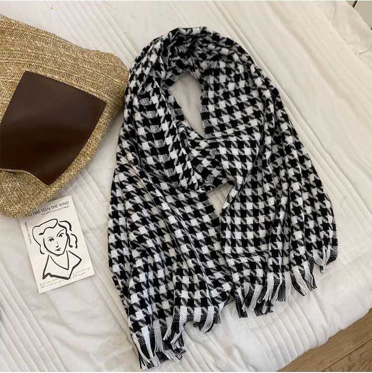 클래식 흑백 숄 스카프 여성 인기 온라인 상품 물떼새 격자 무늬 모조 캐시미어 프린지 롱 스타일 겨울 보온