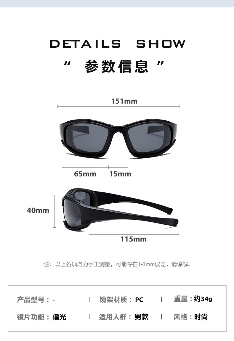 야외 편광 색상 변경 안경 승마 눈 보호 스키 블랙 프레임 바람과 모래 스폰지 전술 CS 선글라스 스포츠 남녀