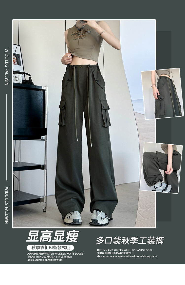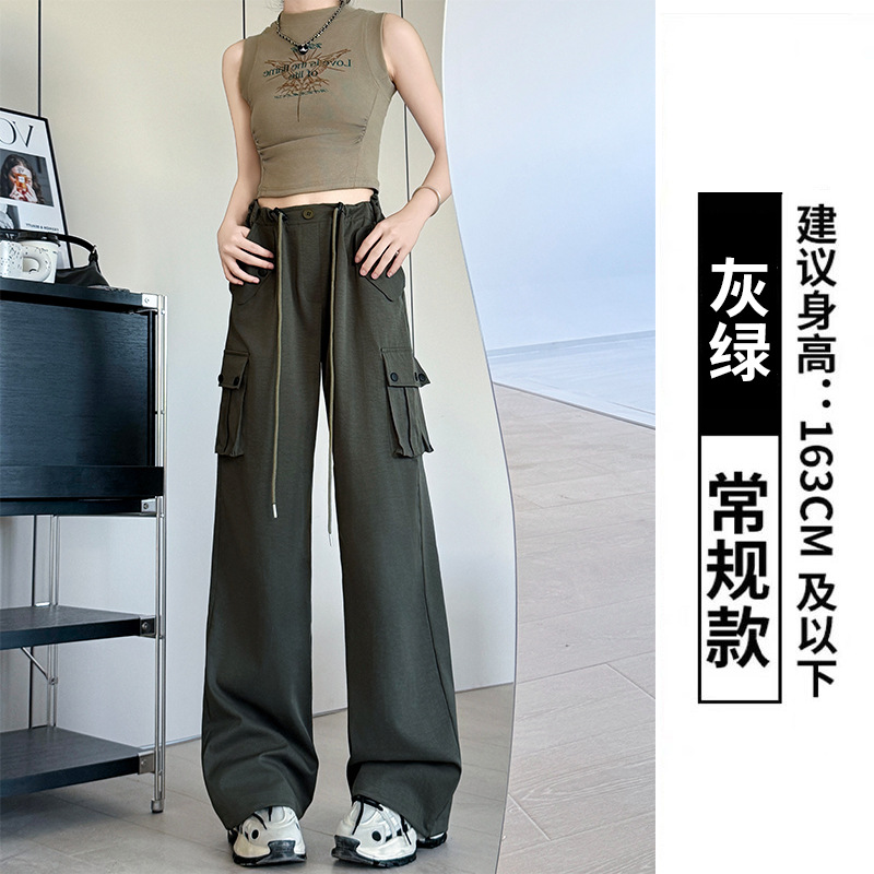 회색과 녹색의 아메리칸 스타일 작업복 바지 여성용 바지 봄 가을 2025 신상 등산용 와이드 팬츠 캐주얼 슬림 스포츠 바지스토어 가기