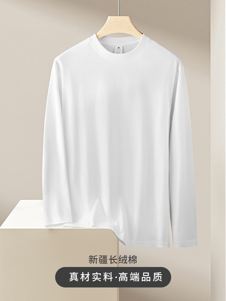 순면 긴팔 남성 스포츠 캐주얼 화이트 베이스 셔츠 남성용 가을 겨울 신상 이너웨어 스웨트셔츠 남성용 루즈핏 긴 티셔츠