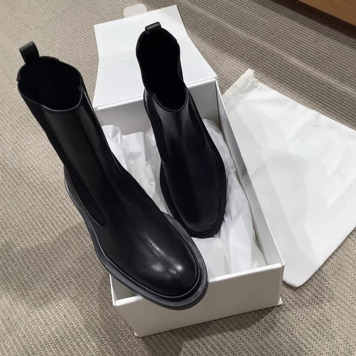 양가죽 버전 ~ 영국 스타일 정품 가죽 두꺼운 밑창 첼시 부츠 여자 두꺼운 힐 스트레치 짧은 부츠 발목 부츠 스키니 마틴 부츠스토어 가기