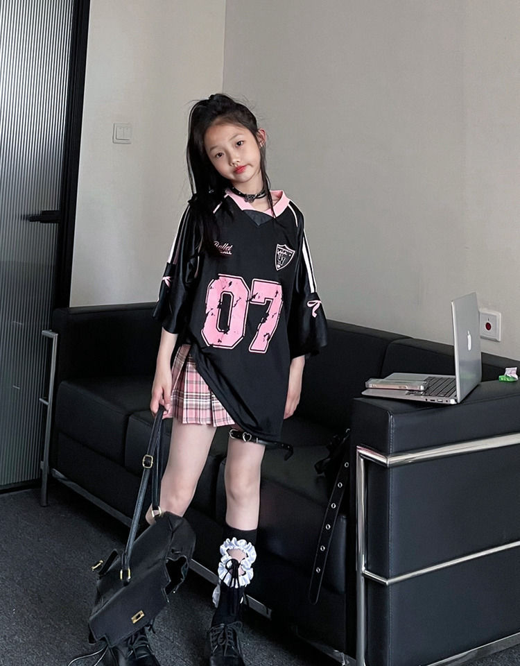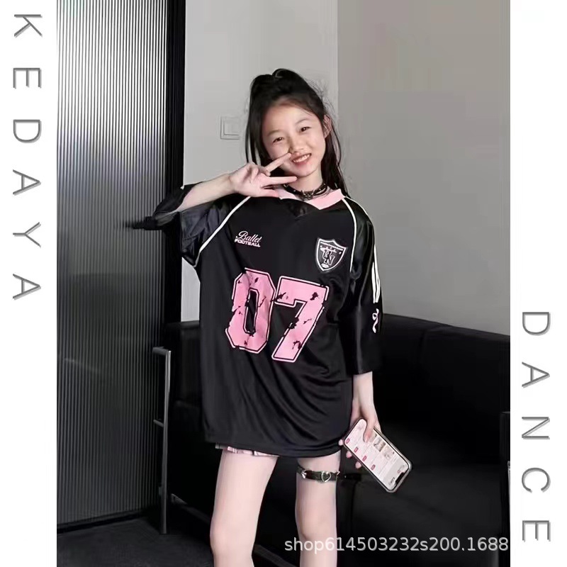 아메리칸 스타일 하이 스트리트 블랙 반팔 티셔츠 스위트 쿨 걸스 여름 새로운 스포츠웨어 레트로 힙합 탑 트렌디