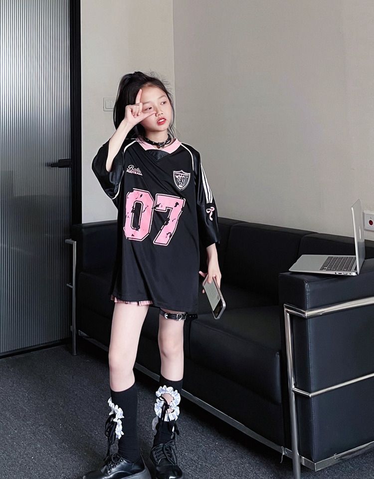 아메리칸 스타일 하이 스트리트 블랙 반팔 티셔츠 스위트 쿨 걸스 여름 새로운 스포츠웨어 레트로 힙합 탑 트렌디스토어 가기