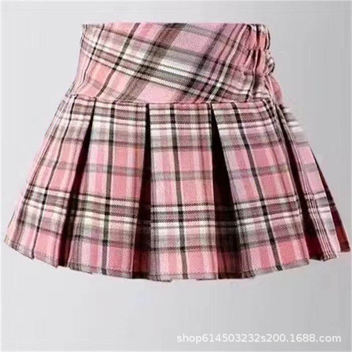 • 핑크 체크 무늬 스커트