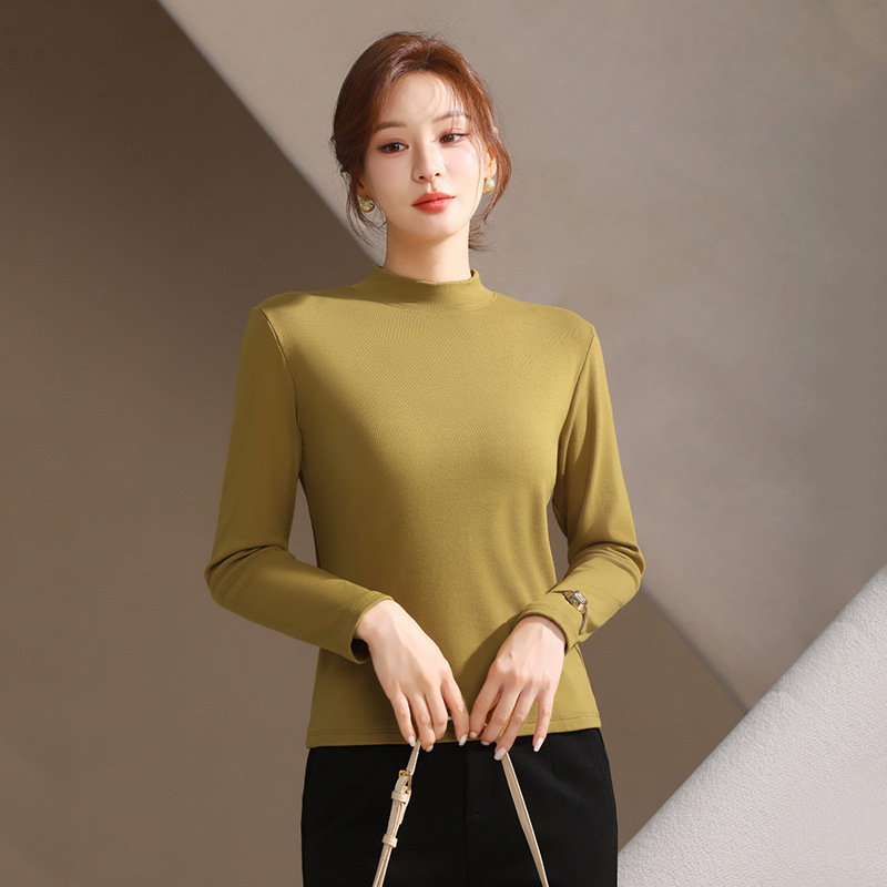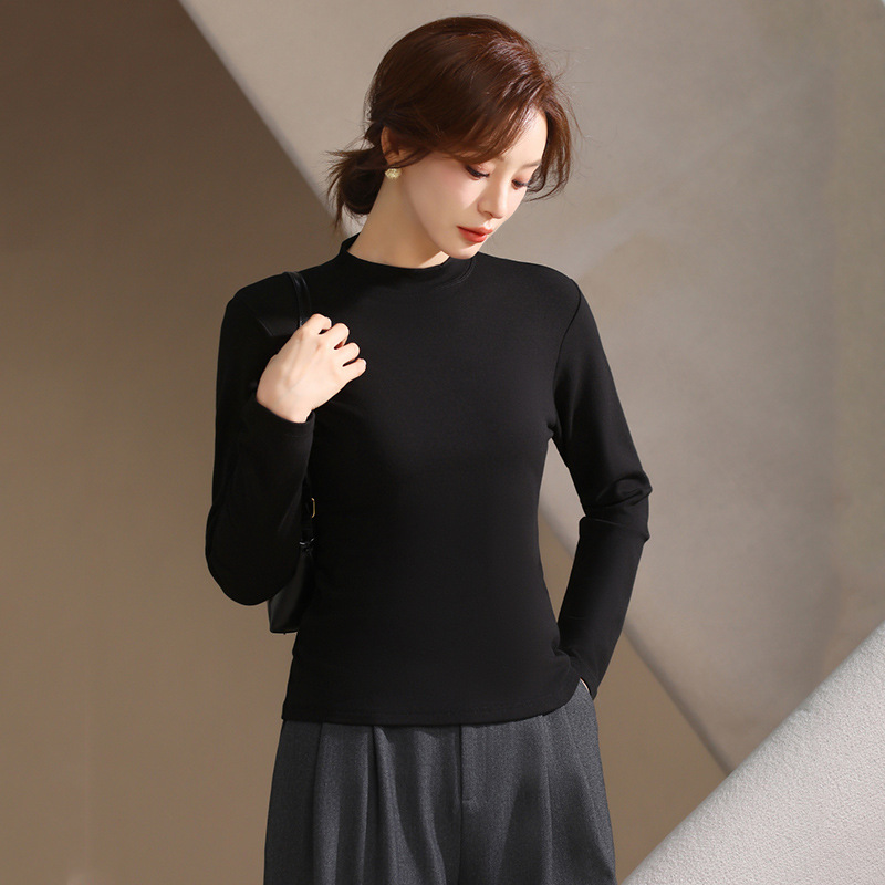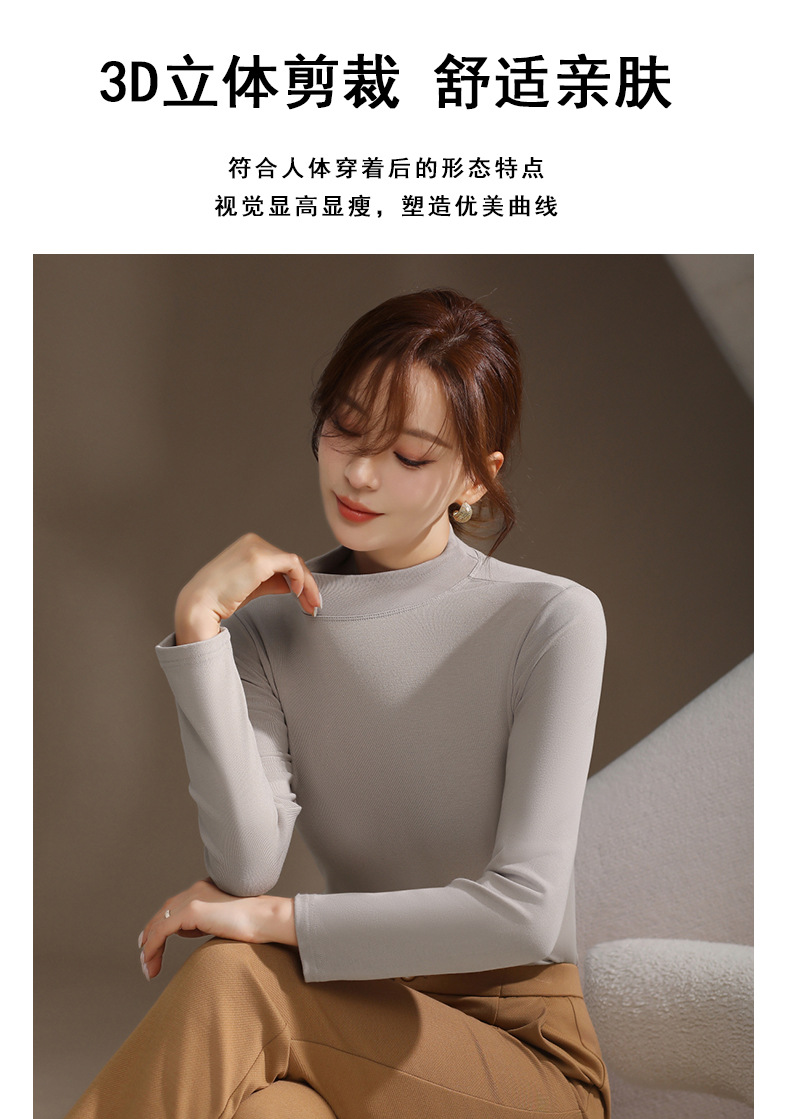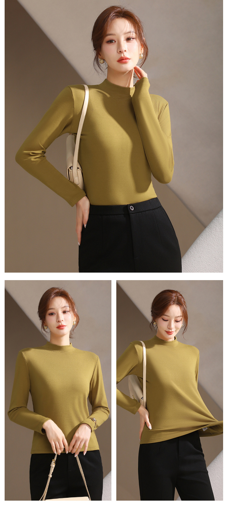 340g 레이온 하프 터틀넥 이너웨어 여성용 가을 겨울 2024 긴팔 스탠드 칼라 탑 가을 겨울 신상
