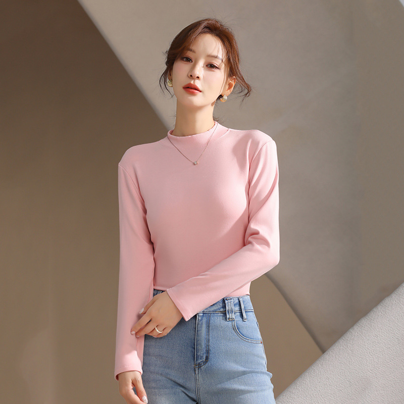 340g 레이온 하프 터틀넥 이너웨어 여성용 가을 겨울 2024 긴팔 스탠드 칼라 탑 가을 겨울 신상스토어 가기
