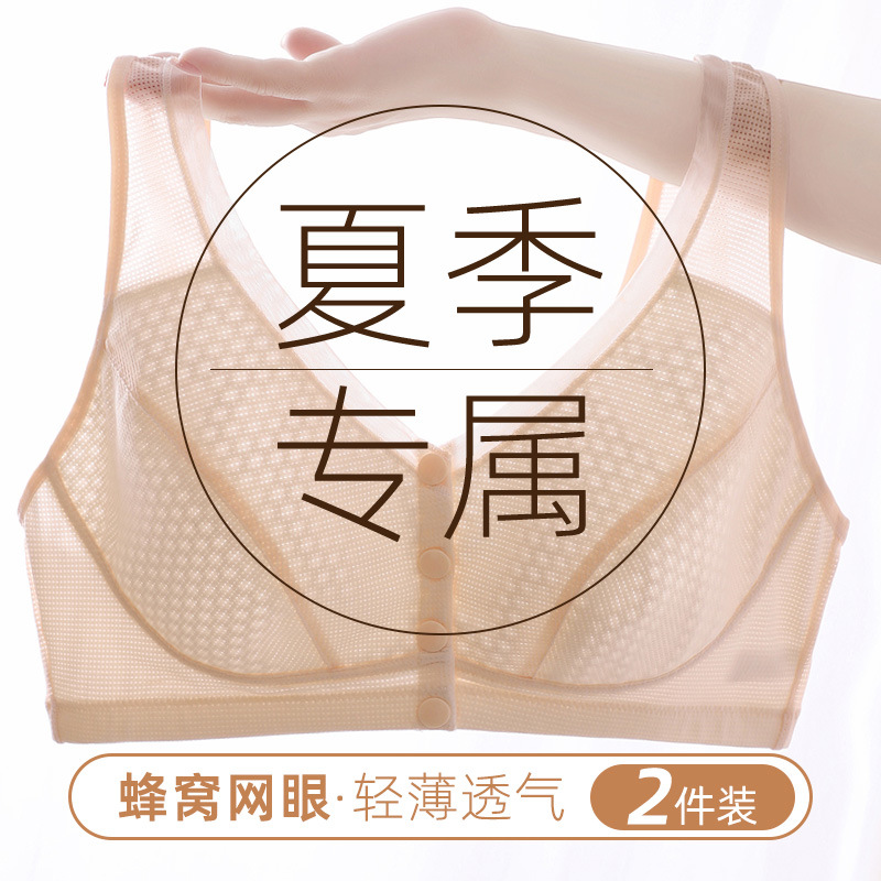 중년 및 노인 브래지어 앞 버클 벌집 스틸 링 프론트 버클 브라 처짐 방지 마더 속옷 여름 얇은 3024