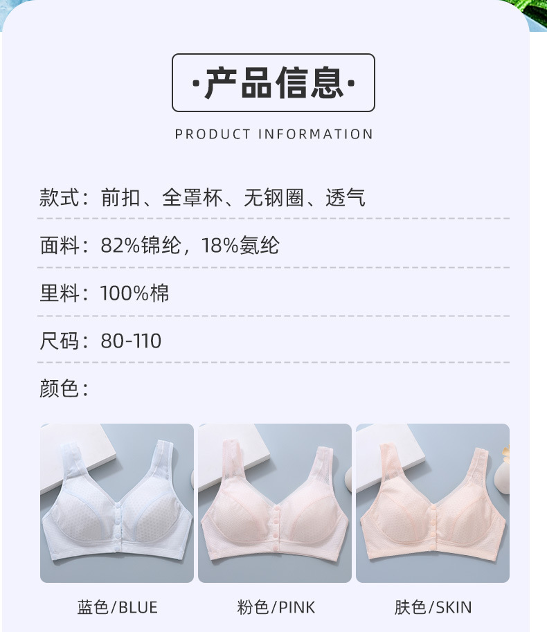 중년 및 노인 브래지어 앞 버클 벌집 스틸 링 프론트 버클 브라 처짐 방지 마더 속옷 여름 얇은 3024스토어 가기