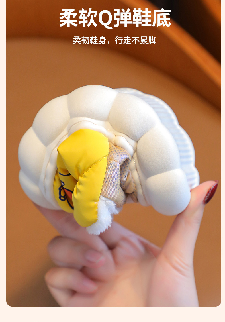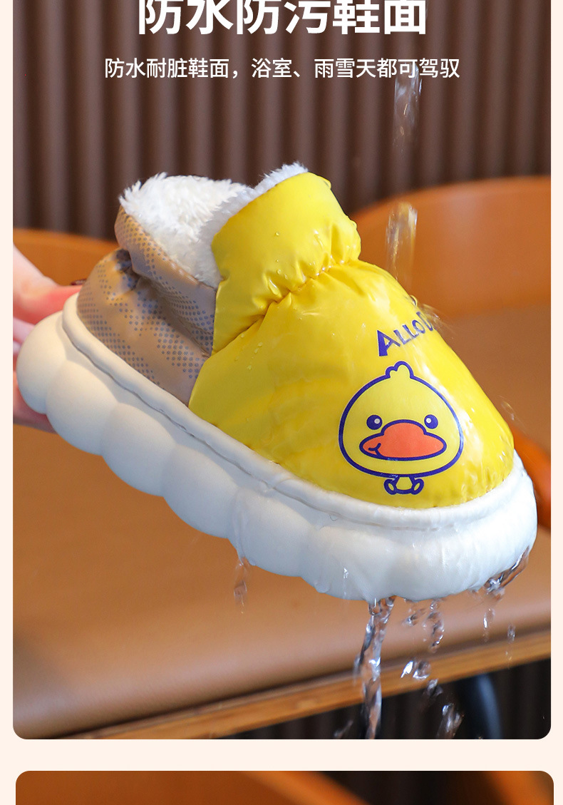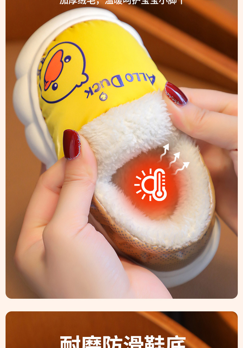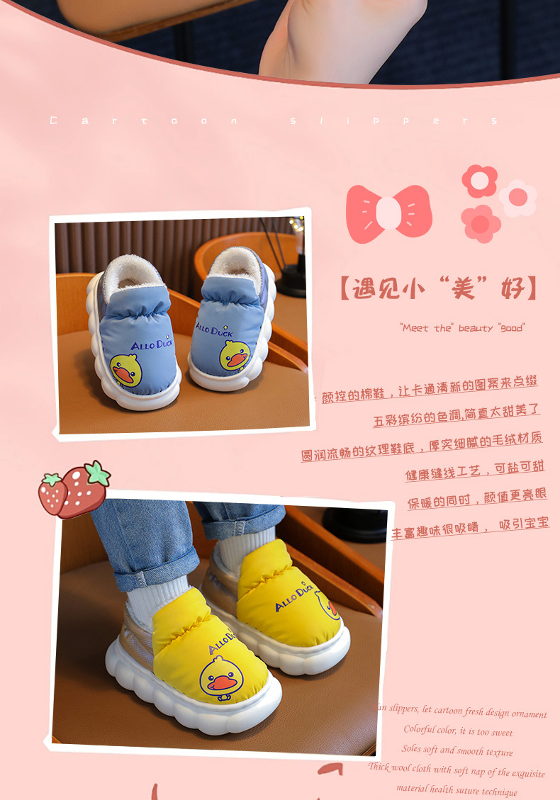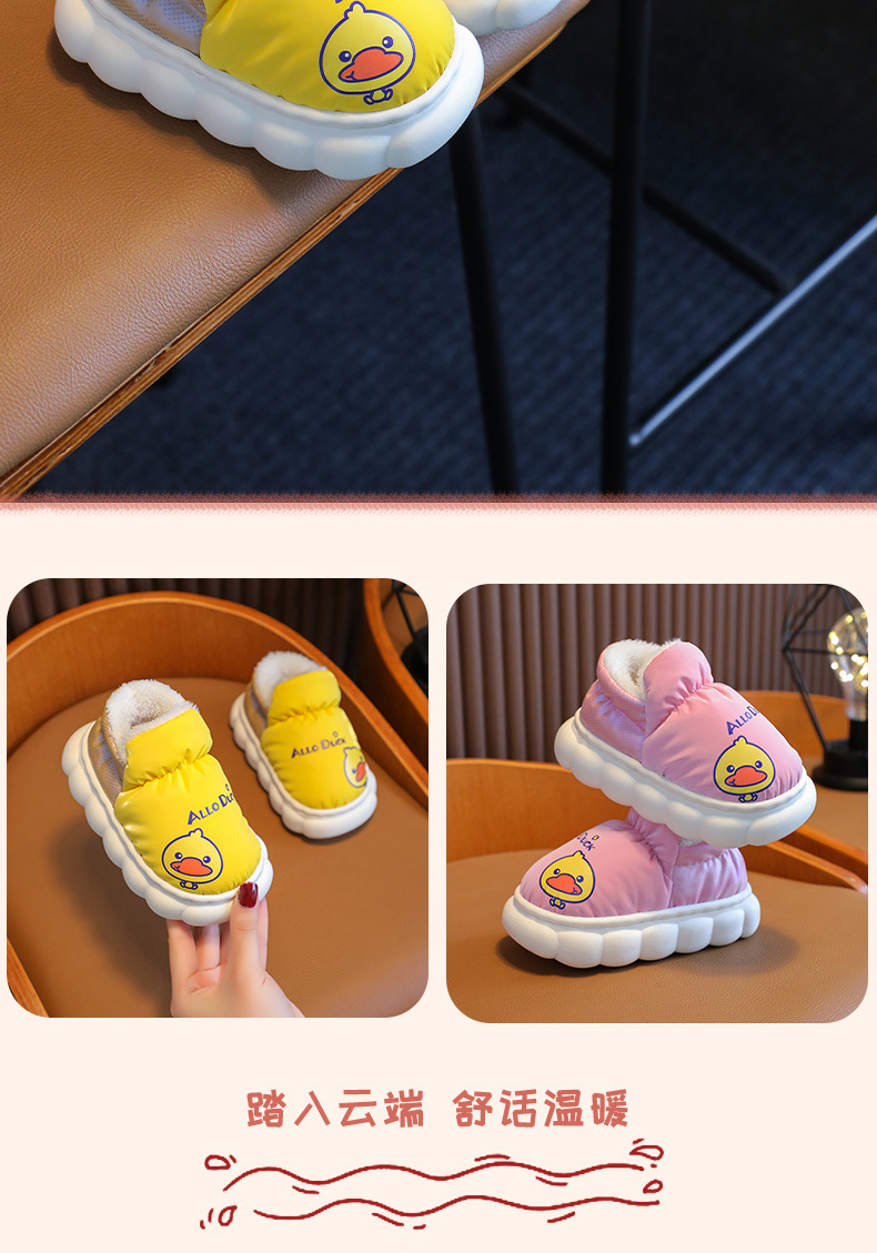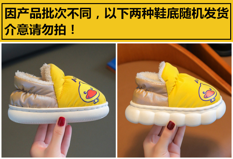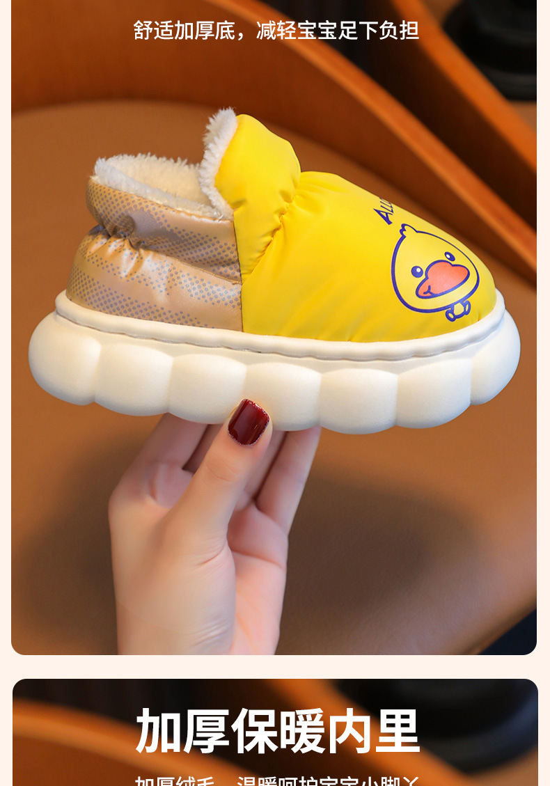 작은 노란색 오리 어린이 면화 겨울 만화 귀여운 가방 뒤꿈치 코튼 신발 홈 실내 및 실외 따뜻한 아기 신발