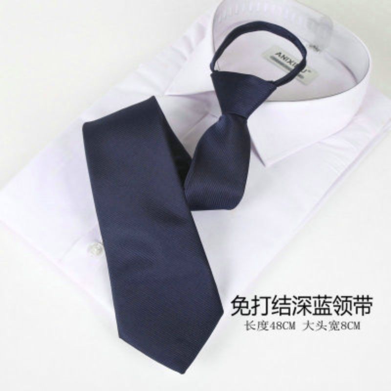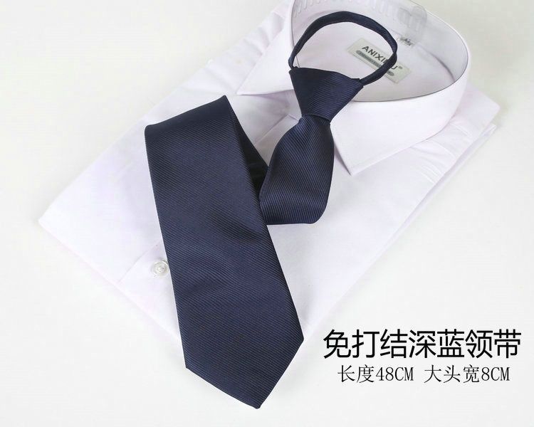• 매듭이 없는 진한 파란색 넥타이, 조임끈 스타일