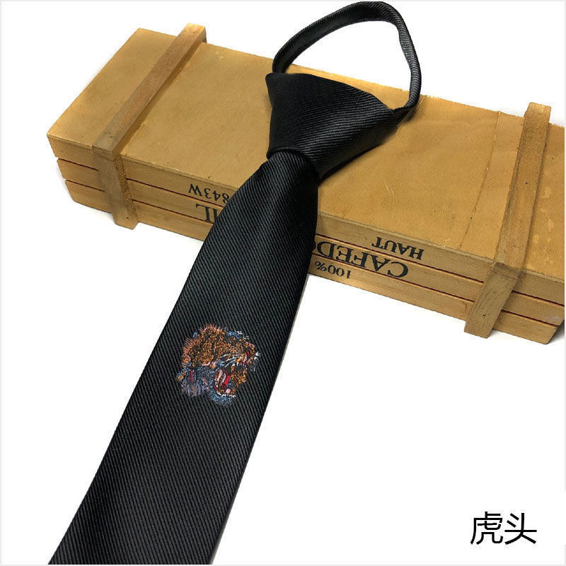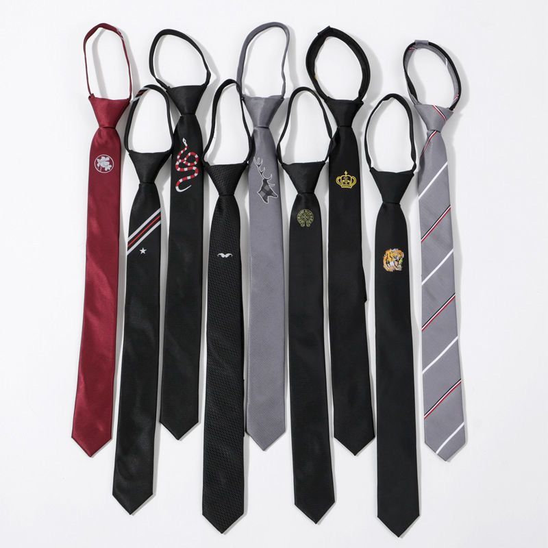 넥타이 개성 자수 5CM 좁은 검은 색과 회색 3 색 줄무늬 남녀 커플 게으른 지퍼 DK 학생 JK 넥타이스토어 가기