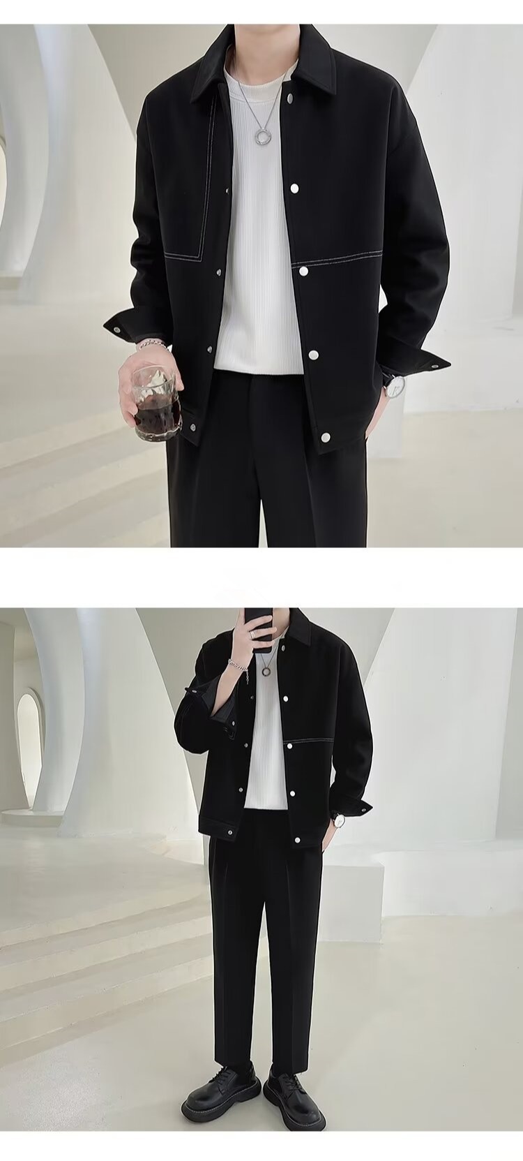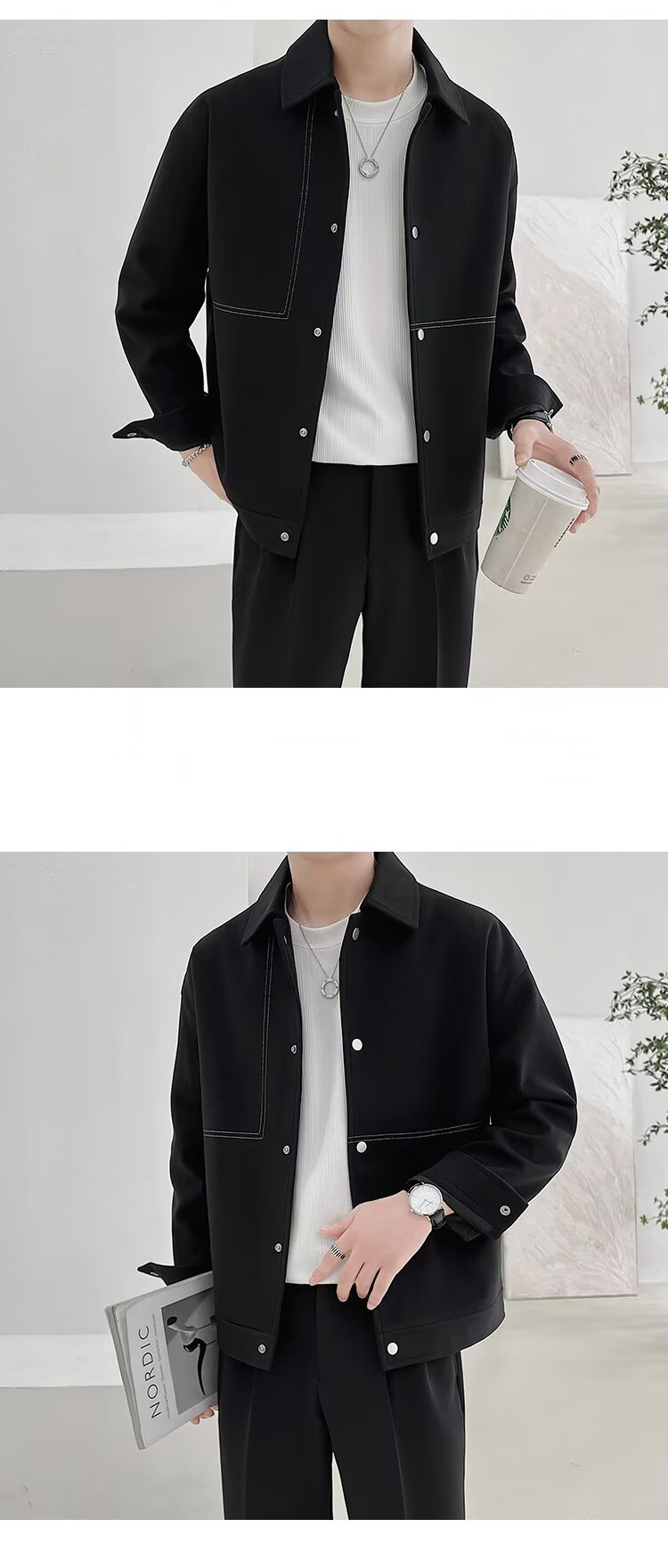 가을 코트 남자 한국 스타일 라이트 성숙한 스타일 남자 짧은 옷깃 재킷 남자의 유행 높은 캐주얼 가을과 겨울 탑