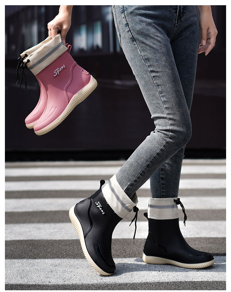 여성용 장화, 성인용 짧은 장화, 여성용 워터슈즈, 미끄럼 방지 주방 작업용 워터부츠, 방수 고무 신발 커버, 방수 및 미끄럼 방지