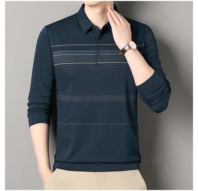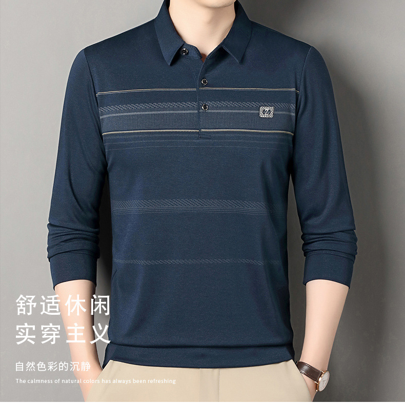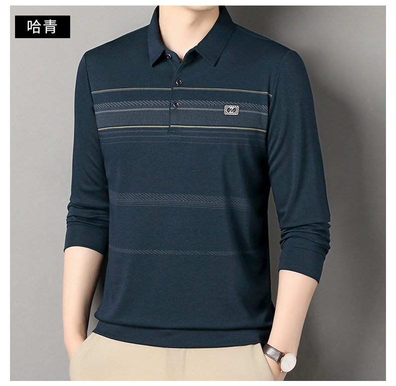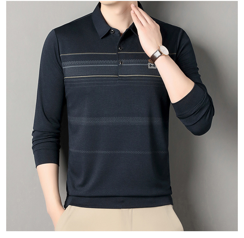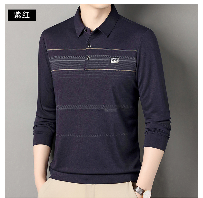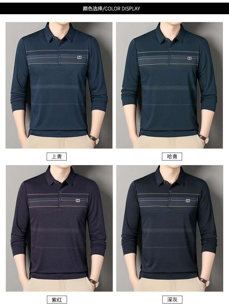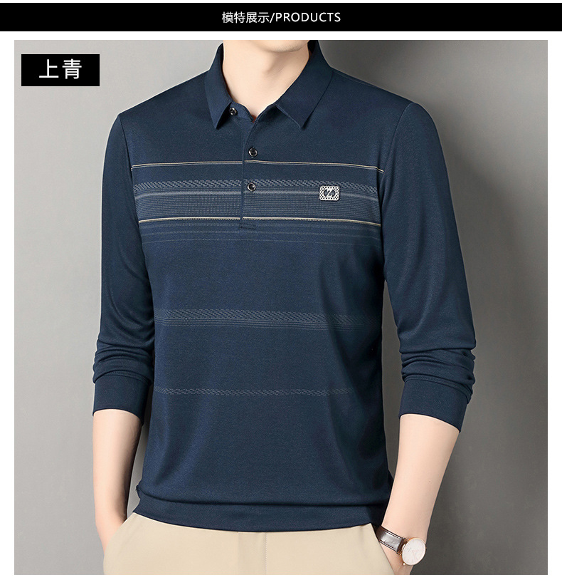 중년 및 노인 남성 긴팔 티셔츠 아빠의 봄과 가을 뜨거운 시추 탑베이스 폴로 셔츠 줄무늬 비즈니스 캐주얼 티셔츠