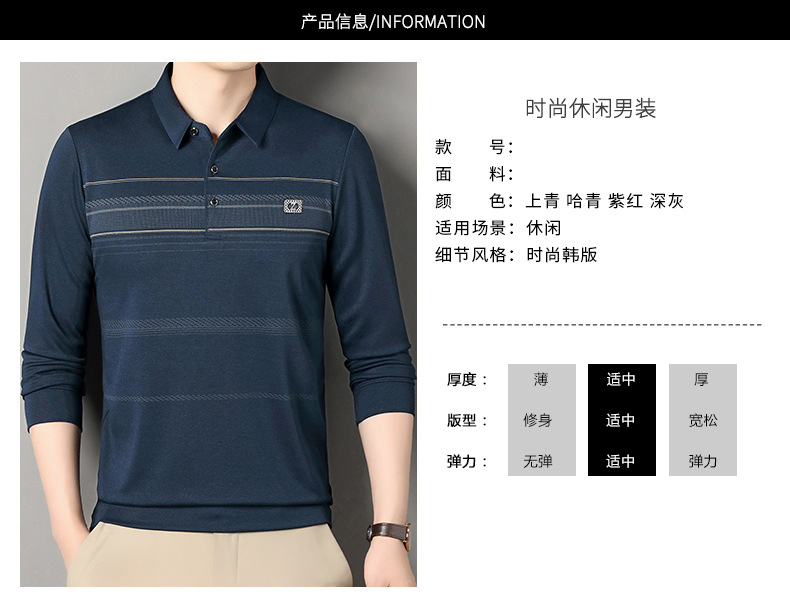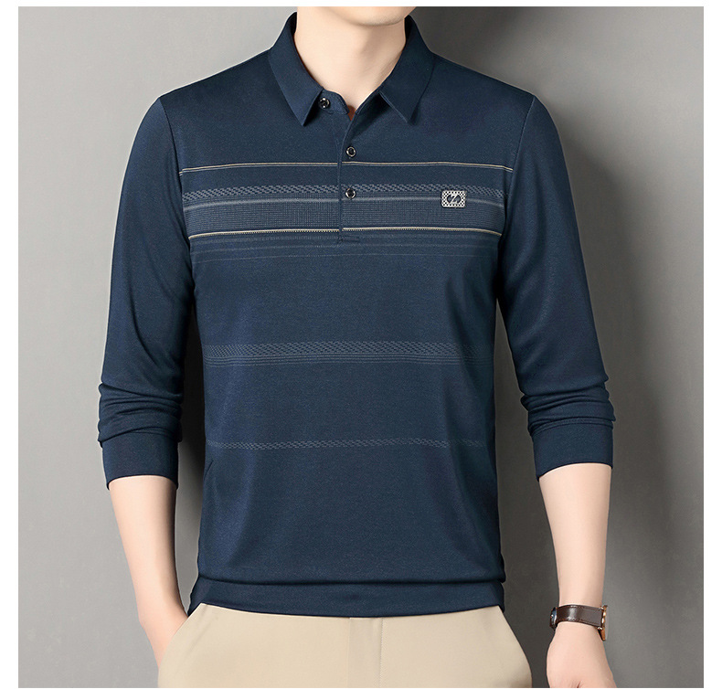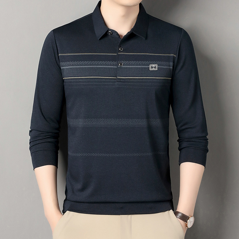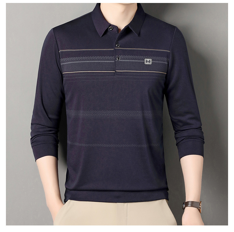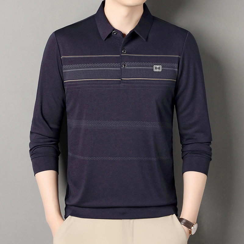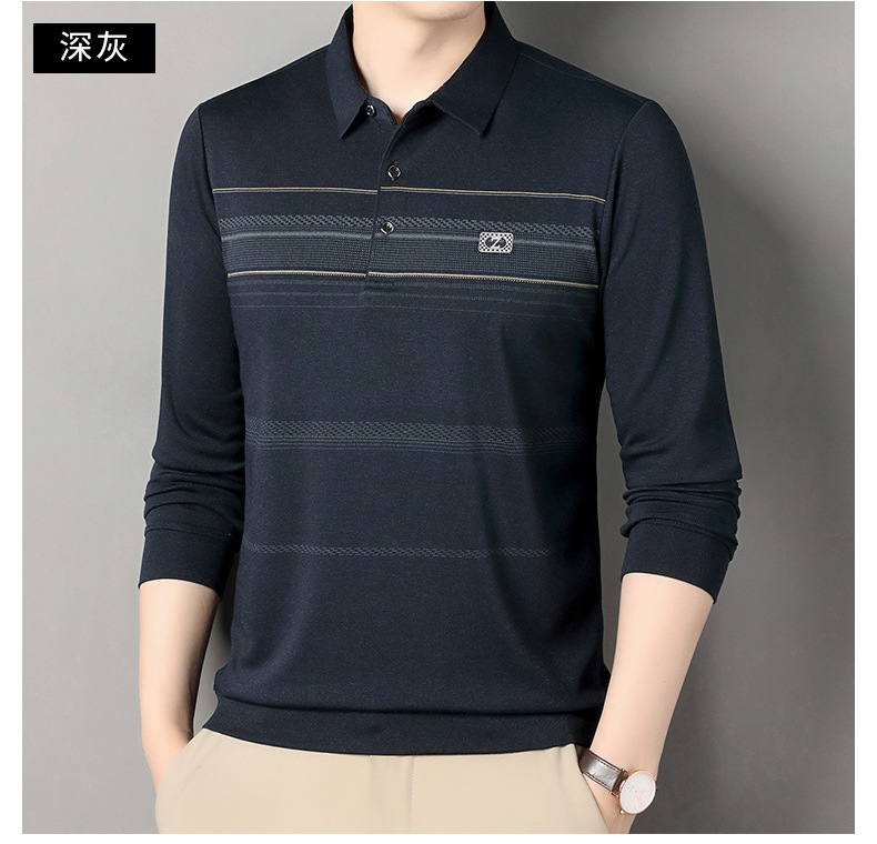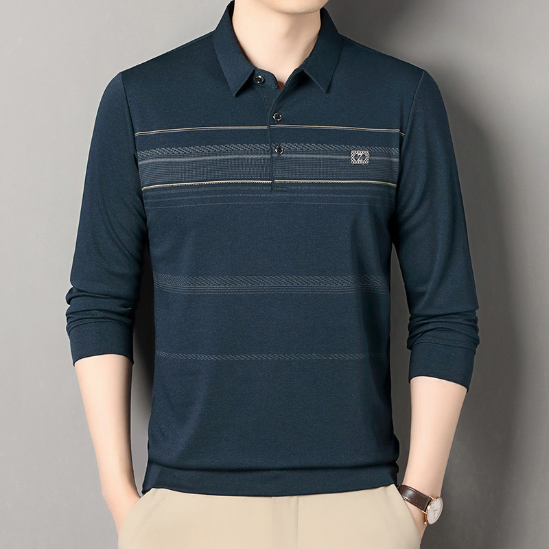 중년 및 노인 남성 긴팔 티셔츠 아빠의 봄과 가을 뜨거운 시추 탑베이스 폴로 셔츠 줄무늬 비즈니스 캐주얼 티셔츠
