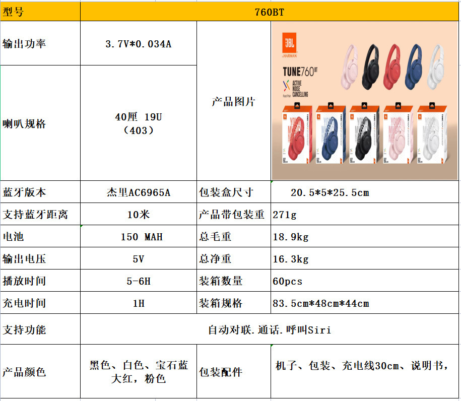 JBL 760NC TUNE 진정한 무선 블루투스 헤드셋 헤드셋 소음 감소 헤드셋 조각 로고 크로스 테두리에 적합스토어 가기