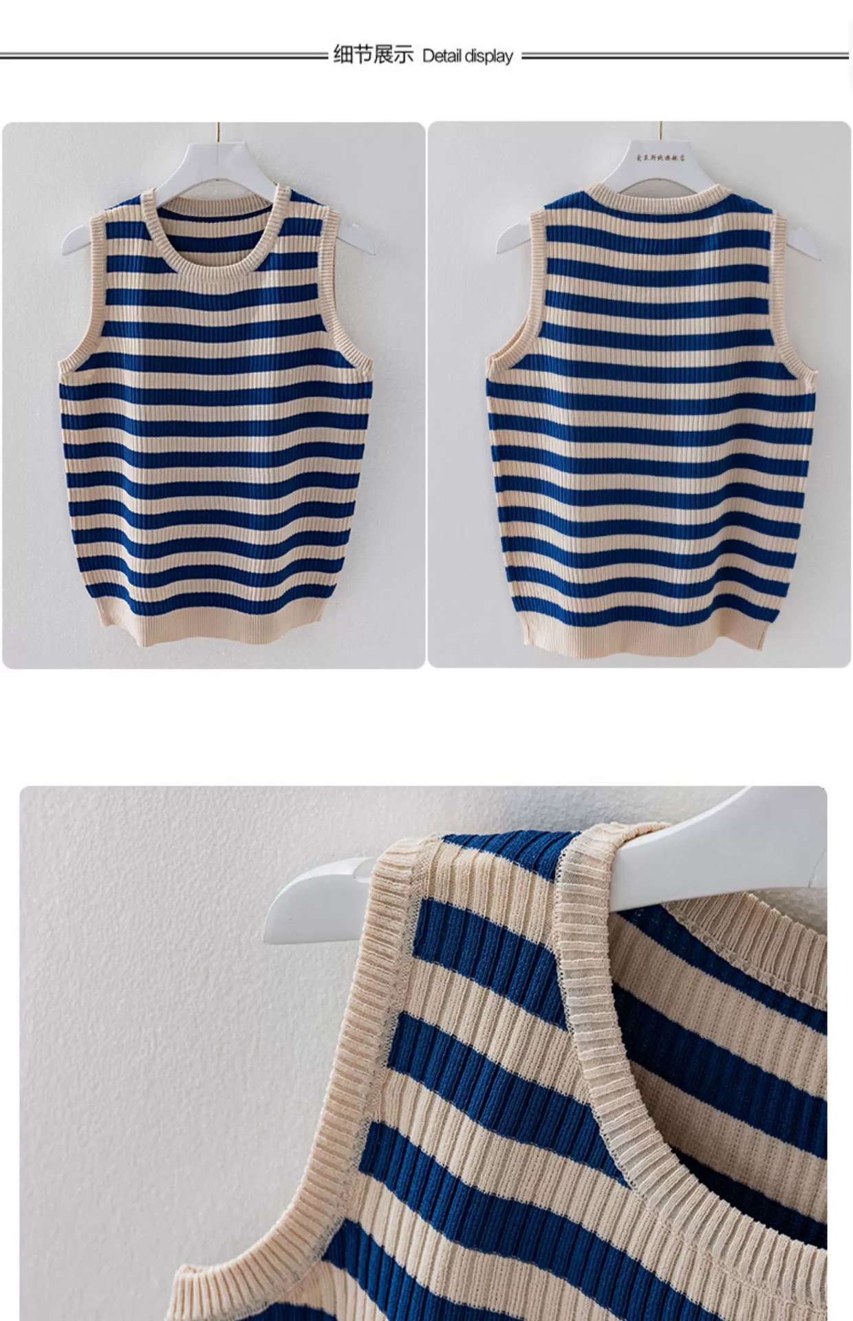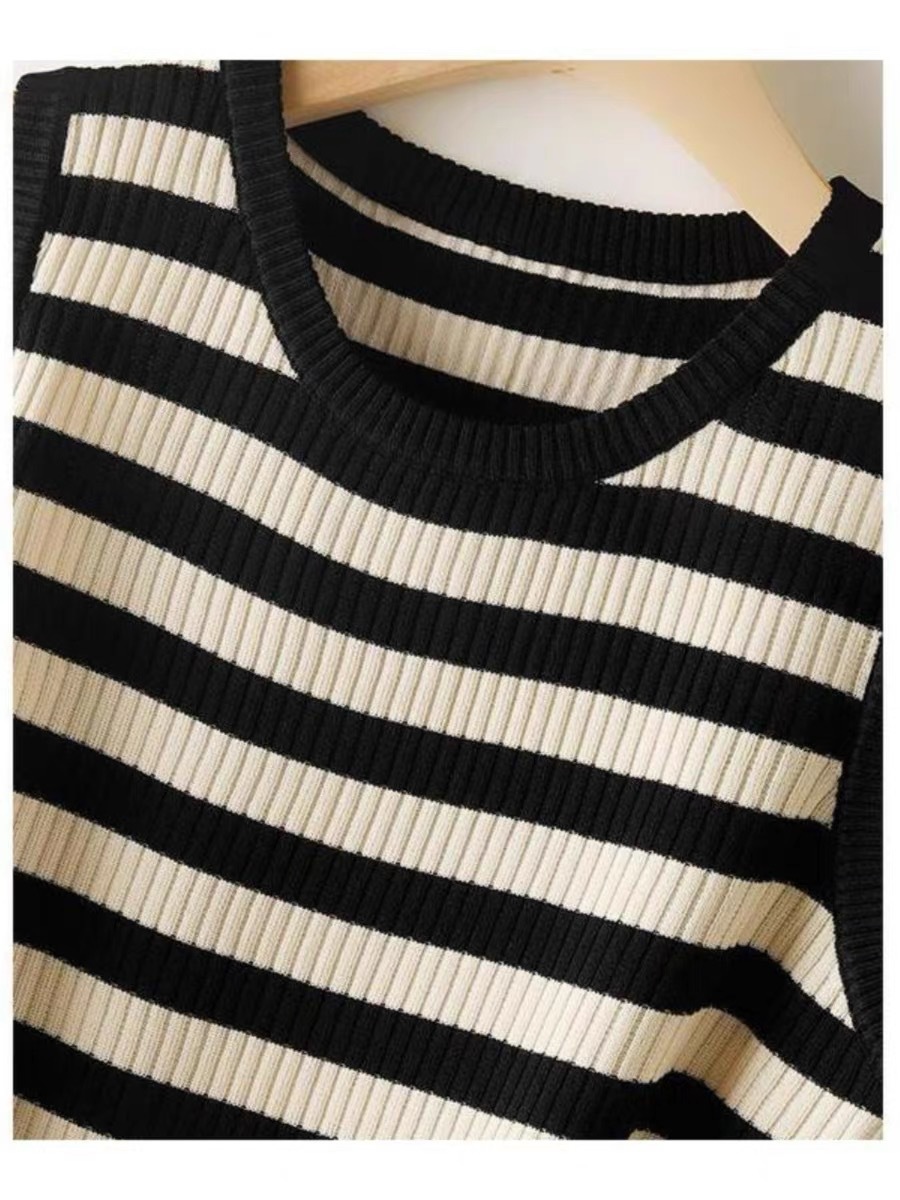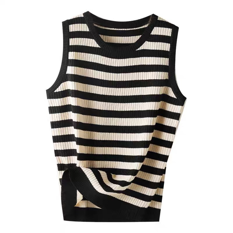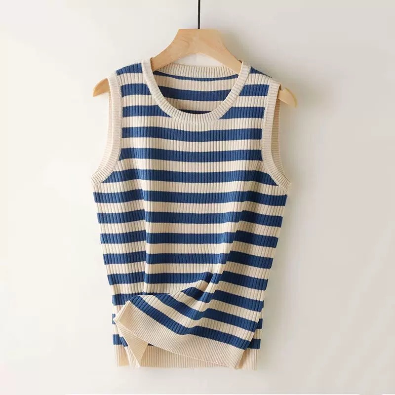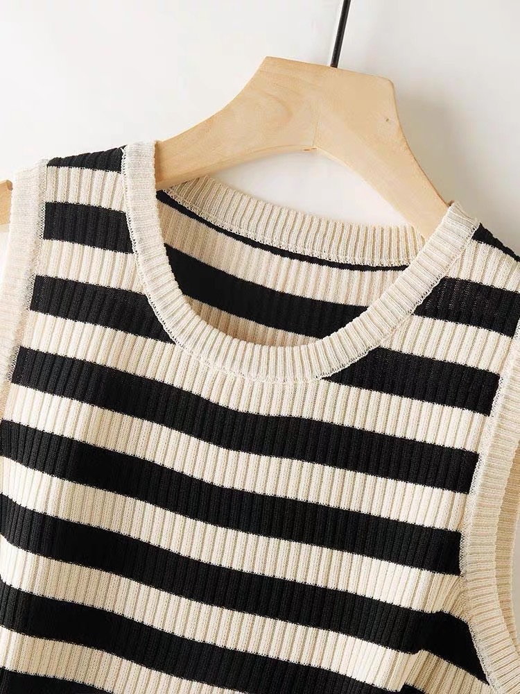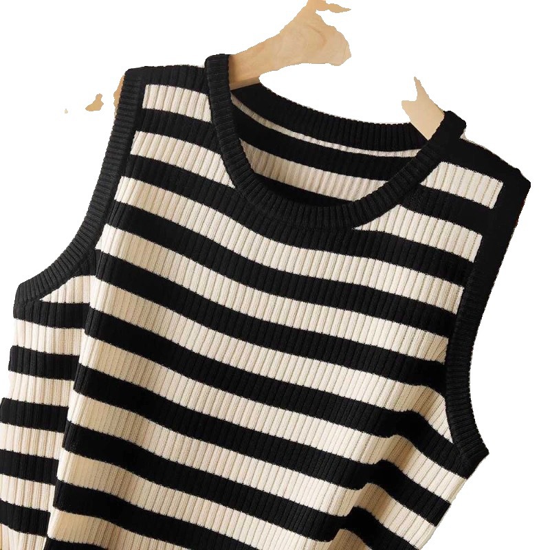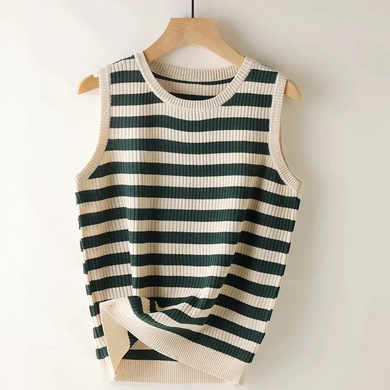 라운드 넥 루즈 스트라이프 카미 솔 여자 스웨터 민소매 탑 올 매치 캐주얼 여자 여름 스레드