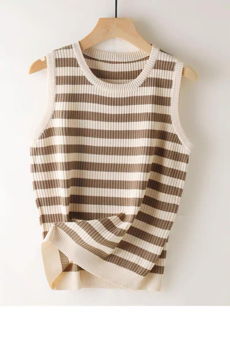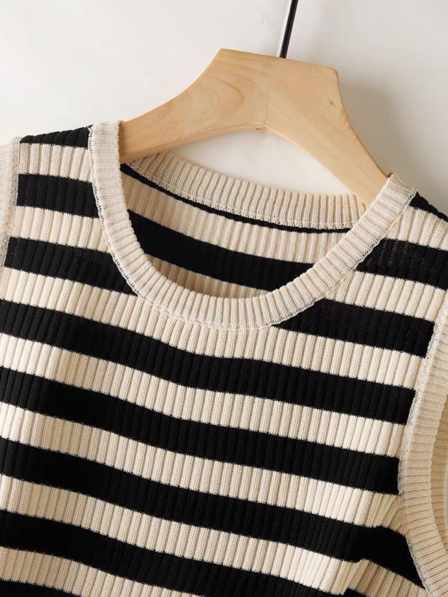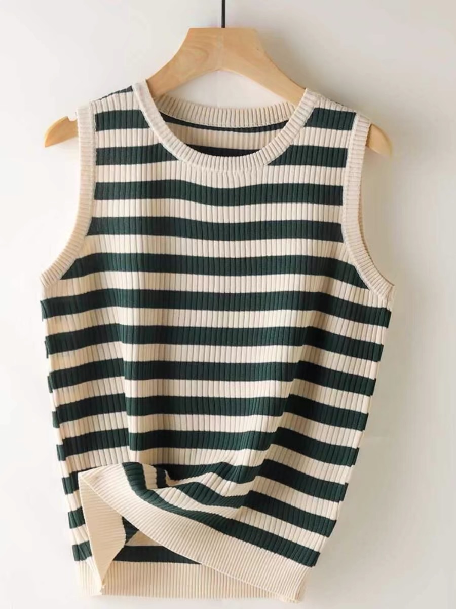 라운드 넥 루즈 스트라이프 카미 솔 여자 스웨터 민소매 탑 올 매치 캐주얼 여자 여름 스레드스토어 가기