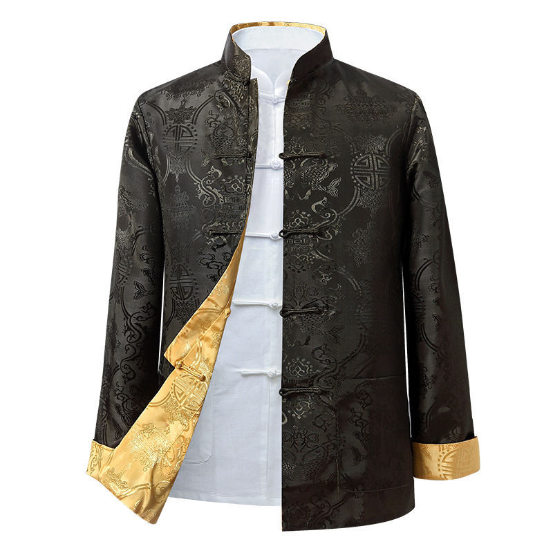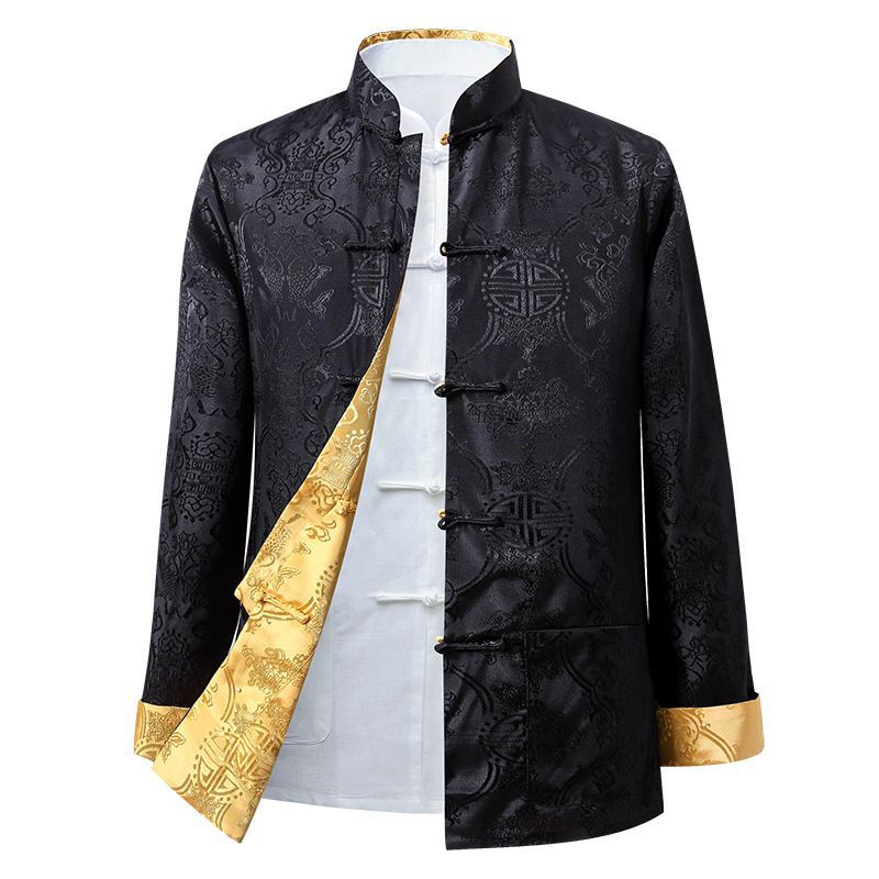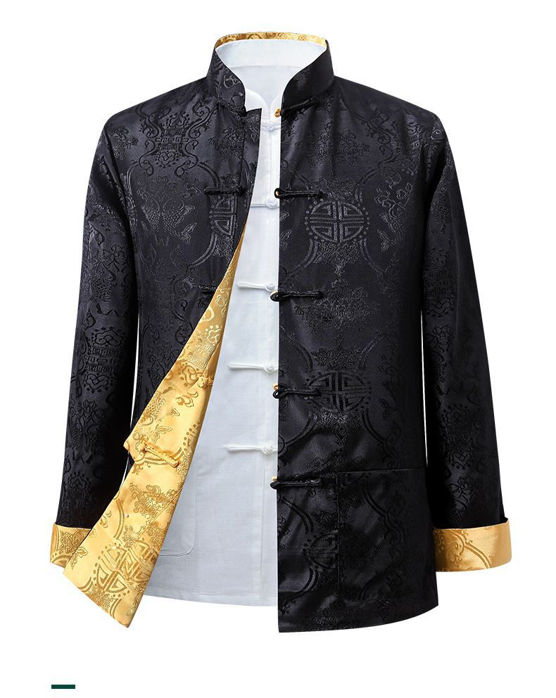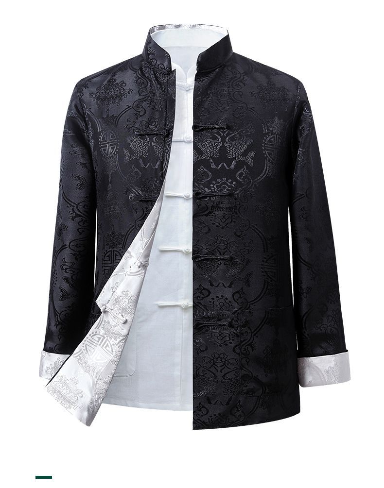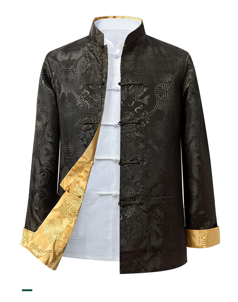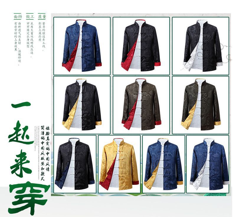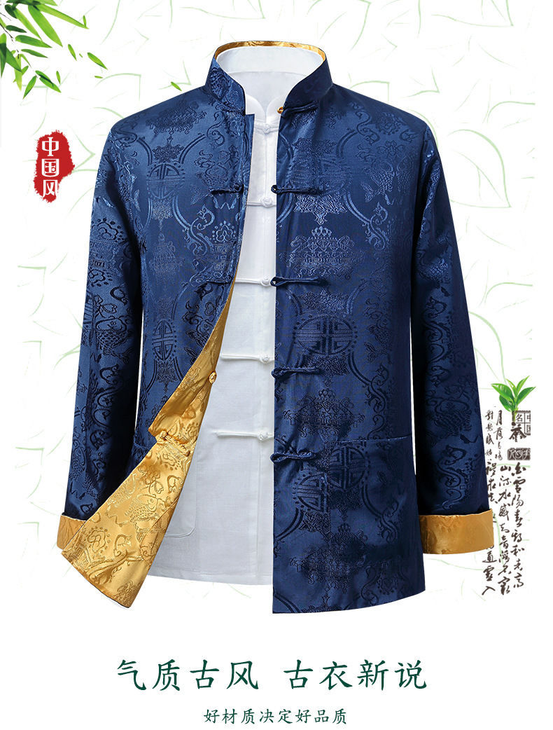 탕 세트 남성 중년 · 고령자 봄 · 가을 긴팔 중국 양면 자켓 중국식 아빠 원피스 할아버지의 한푸스토어 가기