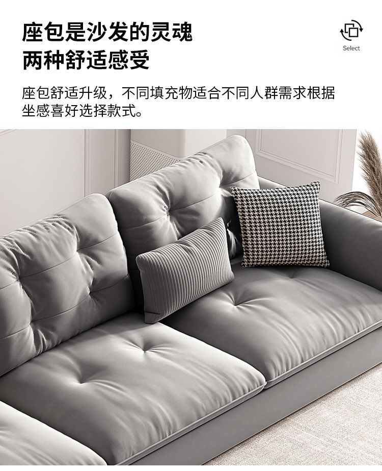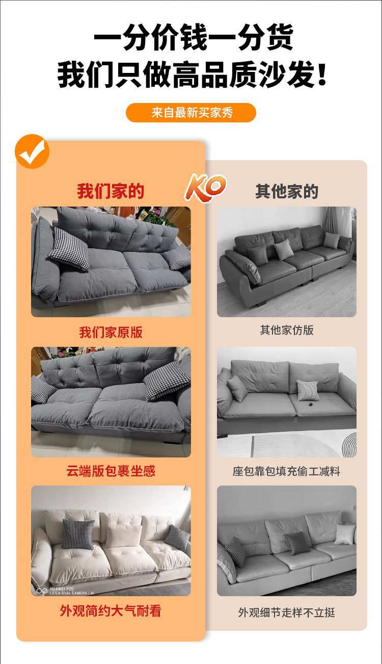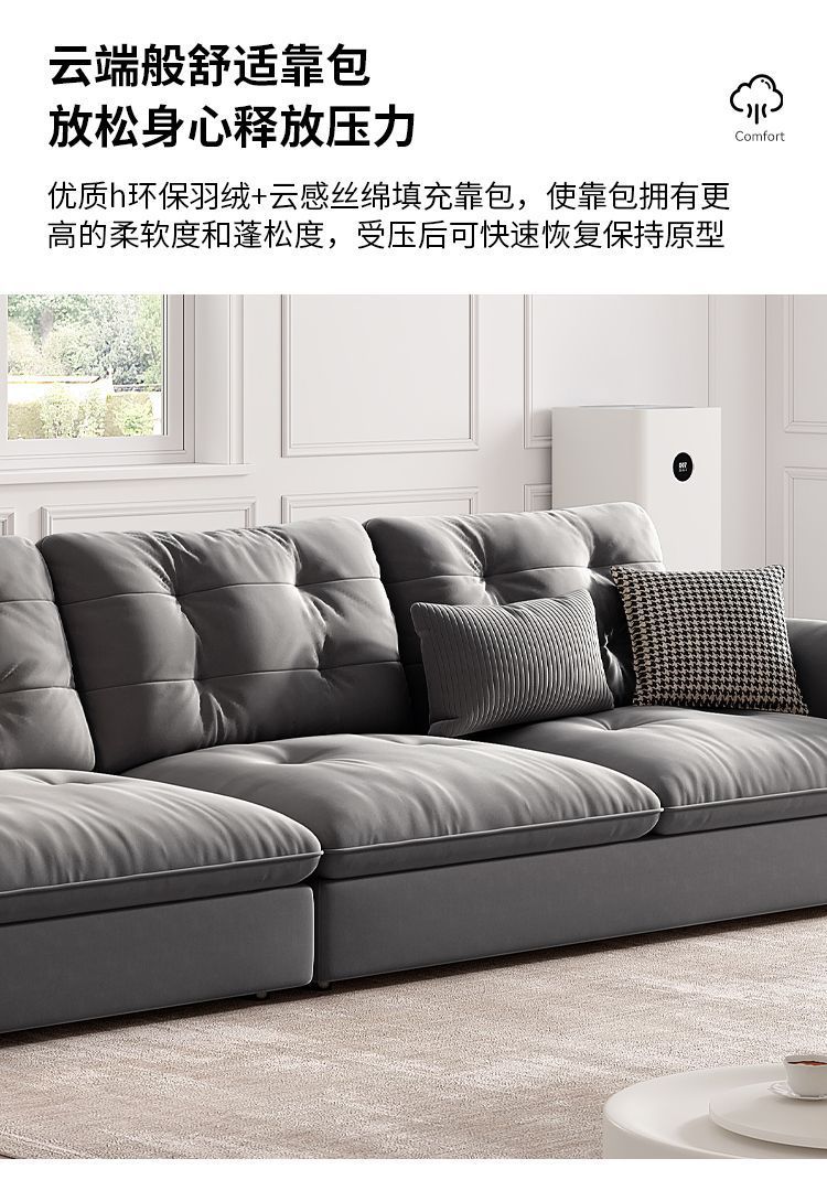 새로운 크림 스타일 거실 작은 아파트 간단한 현대 빛 럭셔리 기술 원단 소파 홈 스트레이트 행 클라우드 소파스토어 가기
