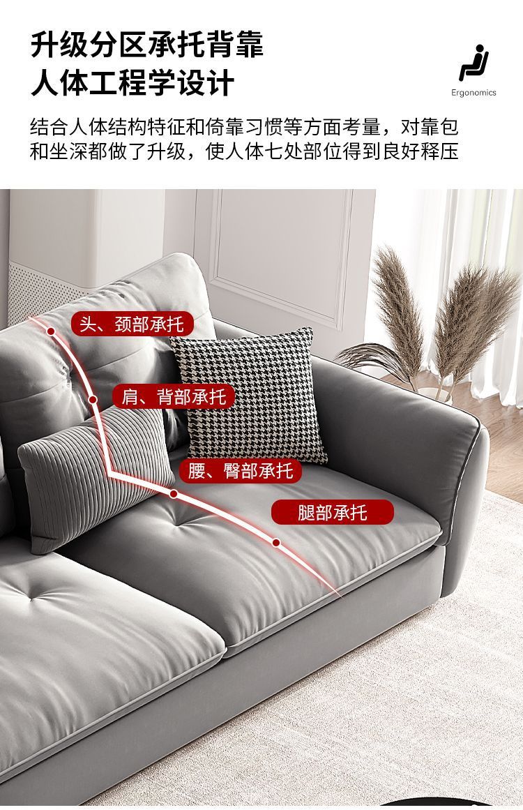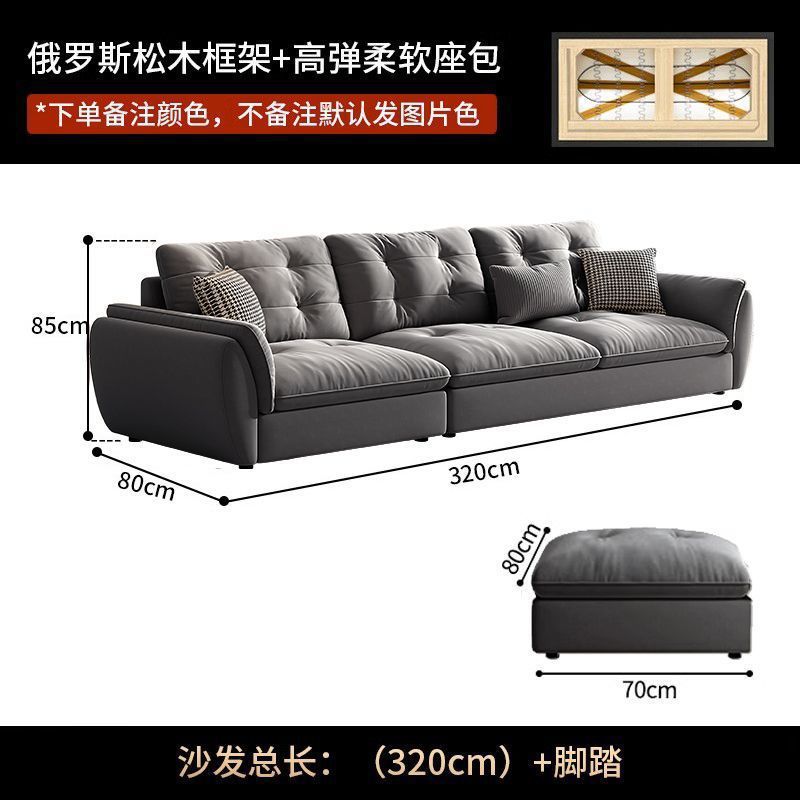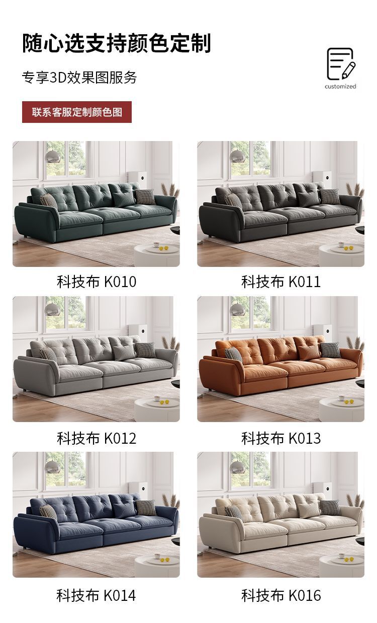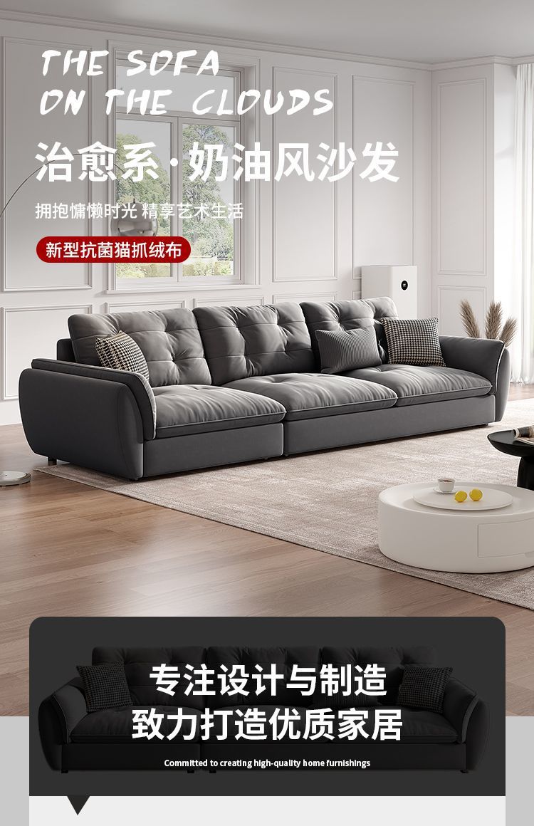 새로운 크림 스타일 거실 작은 아파트 간단한 현대 빛 럭셔리 기술 원단 소파 홈 스트레이트 행 클라우드 소파