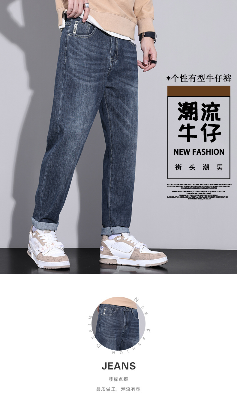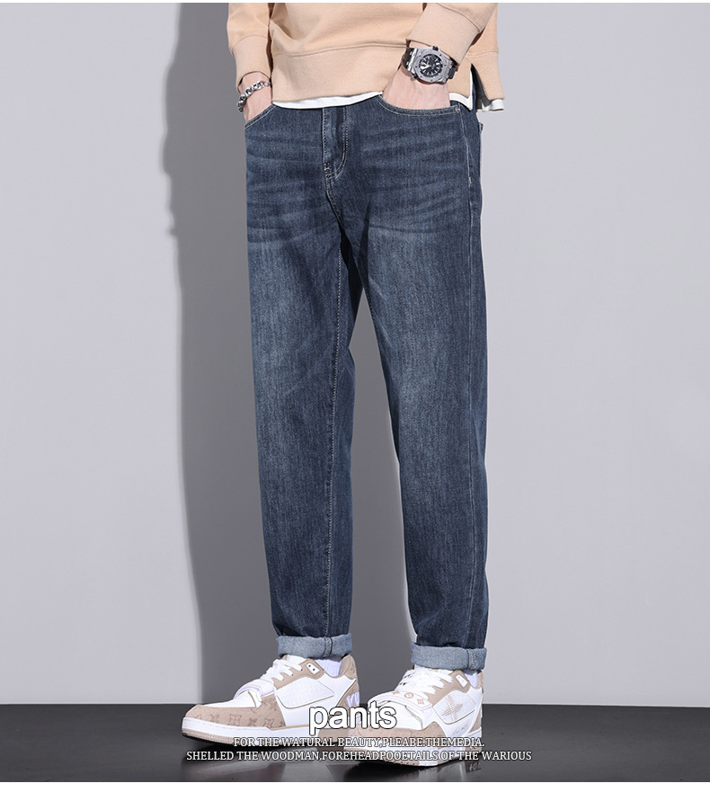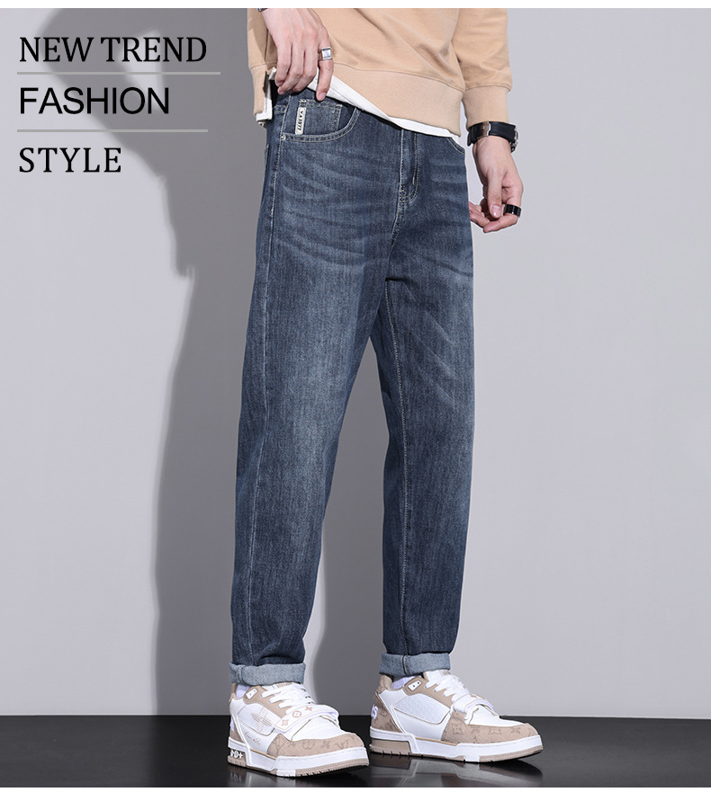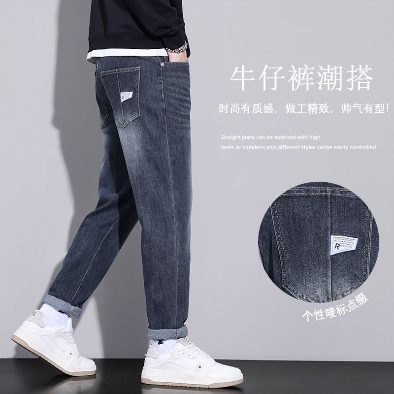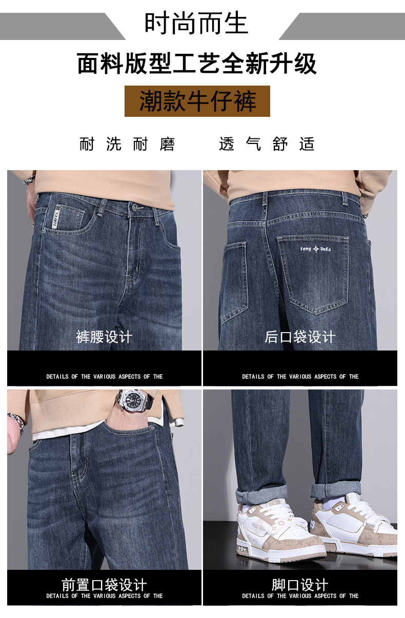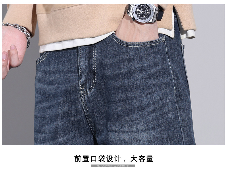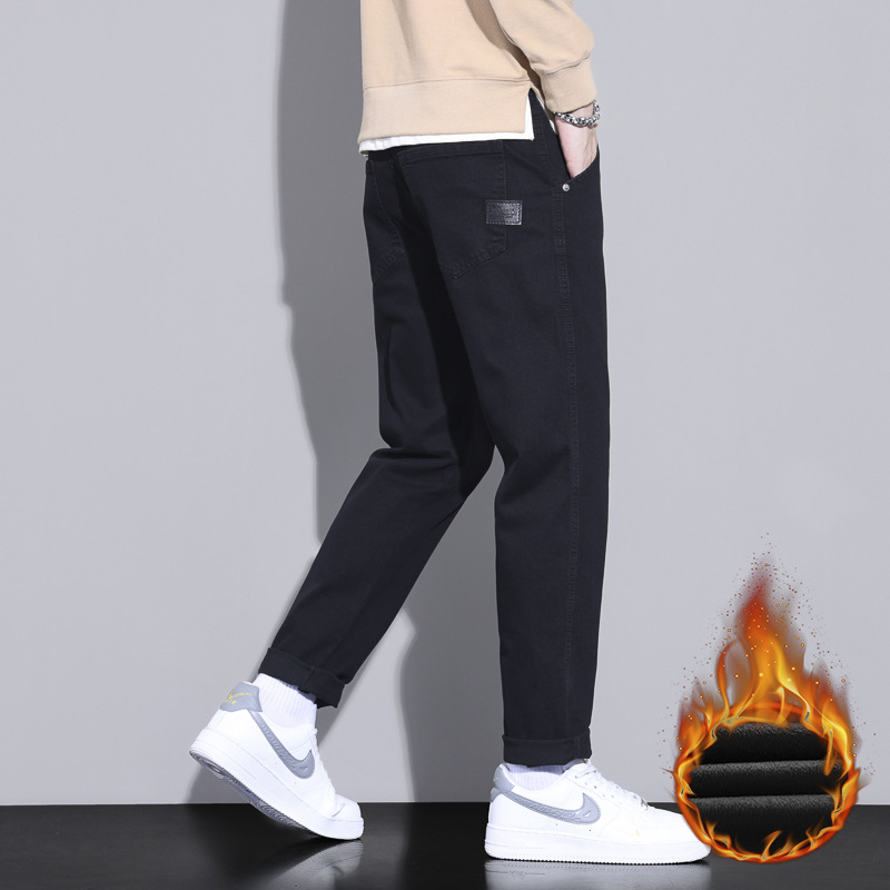 남성용 루즈핏 스트레이트 진, 신축성 있는 2025 가을/겨울 기모 안감 트렌디 브랜드 만능 캐주얼 롱 팬츠, 유행하는 남성 바지스토어 가기