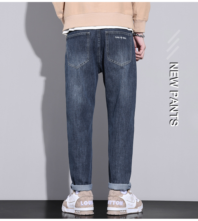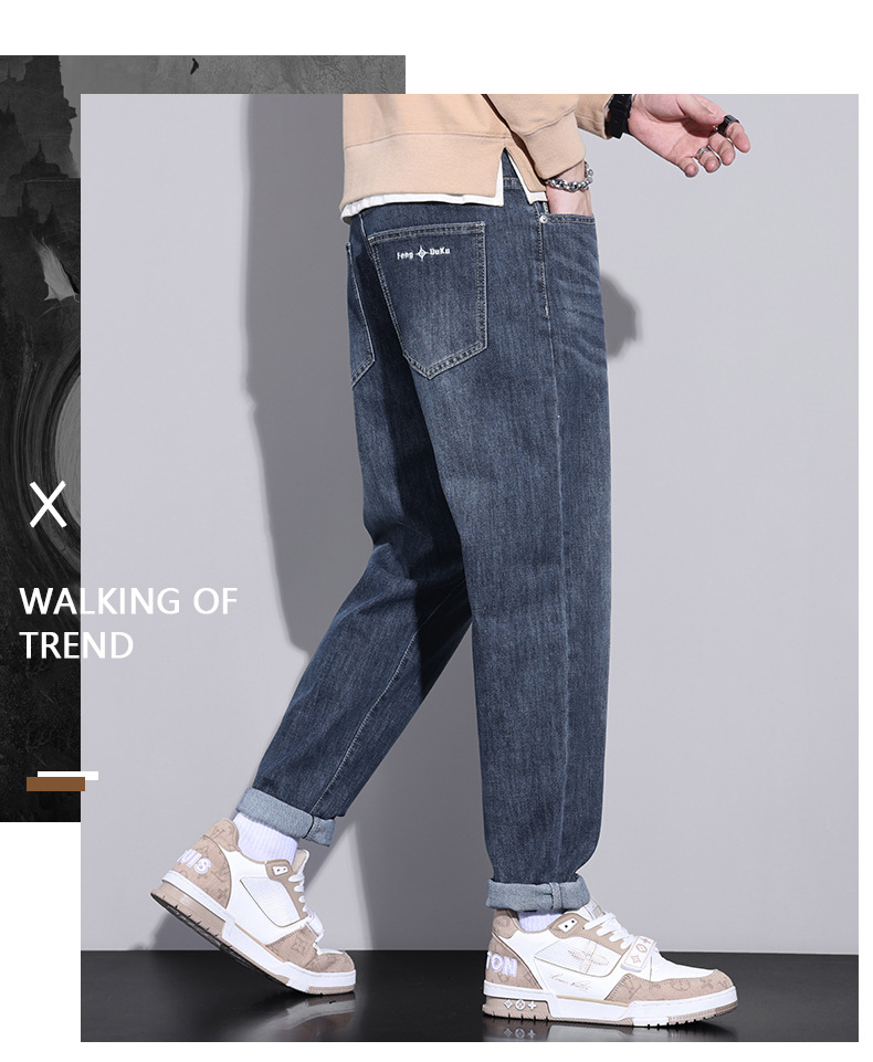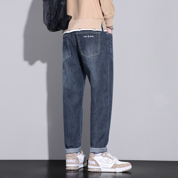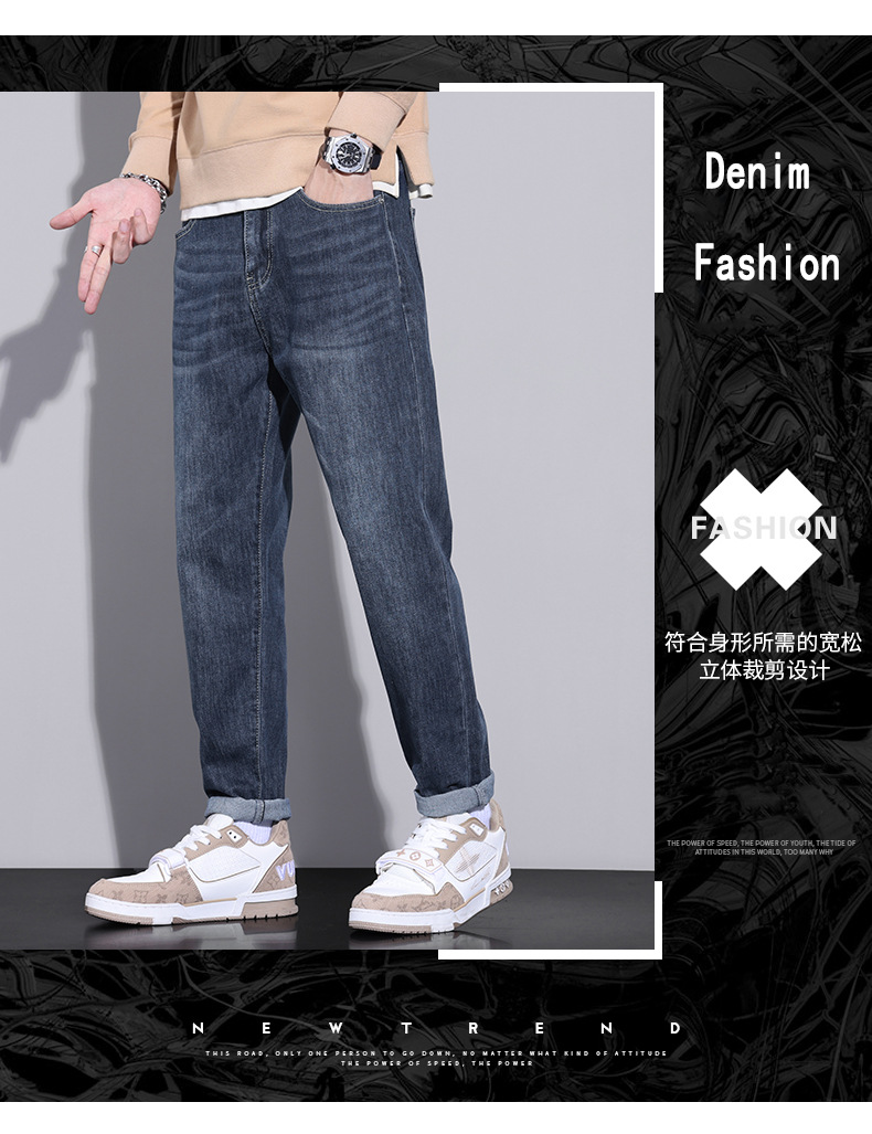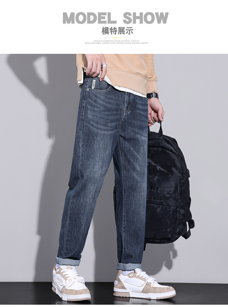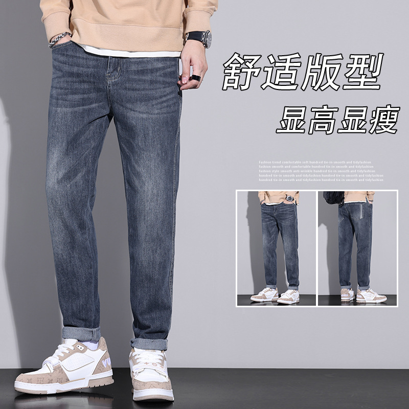 남성용 루즈핏 스트레이트 진, 신축성 있는 2025 가을/겨울 기모 안감 트렌디 브랜드 만능 캐주얼 롱 팬츠, 유행하는 남성 바지스토어 가기