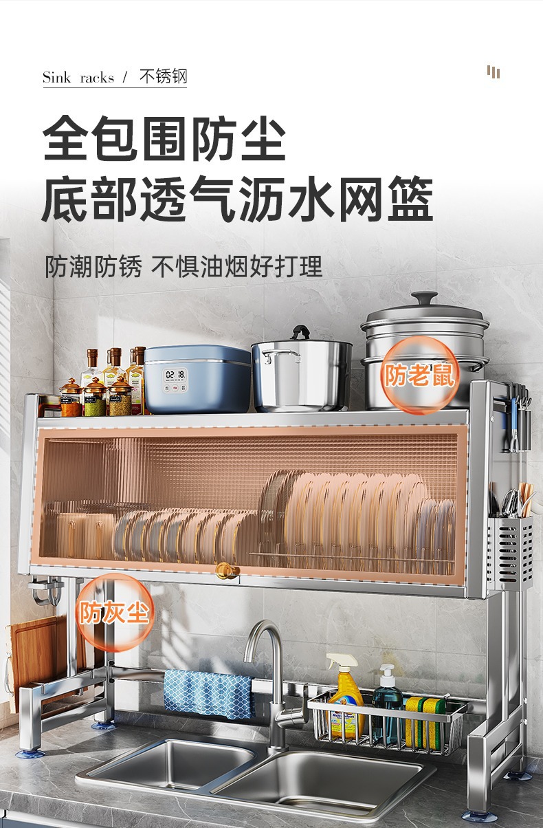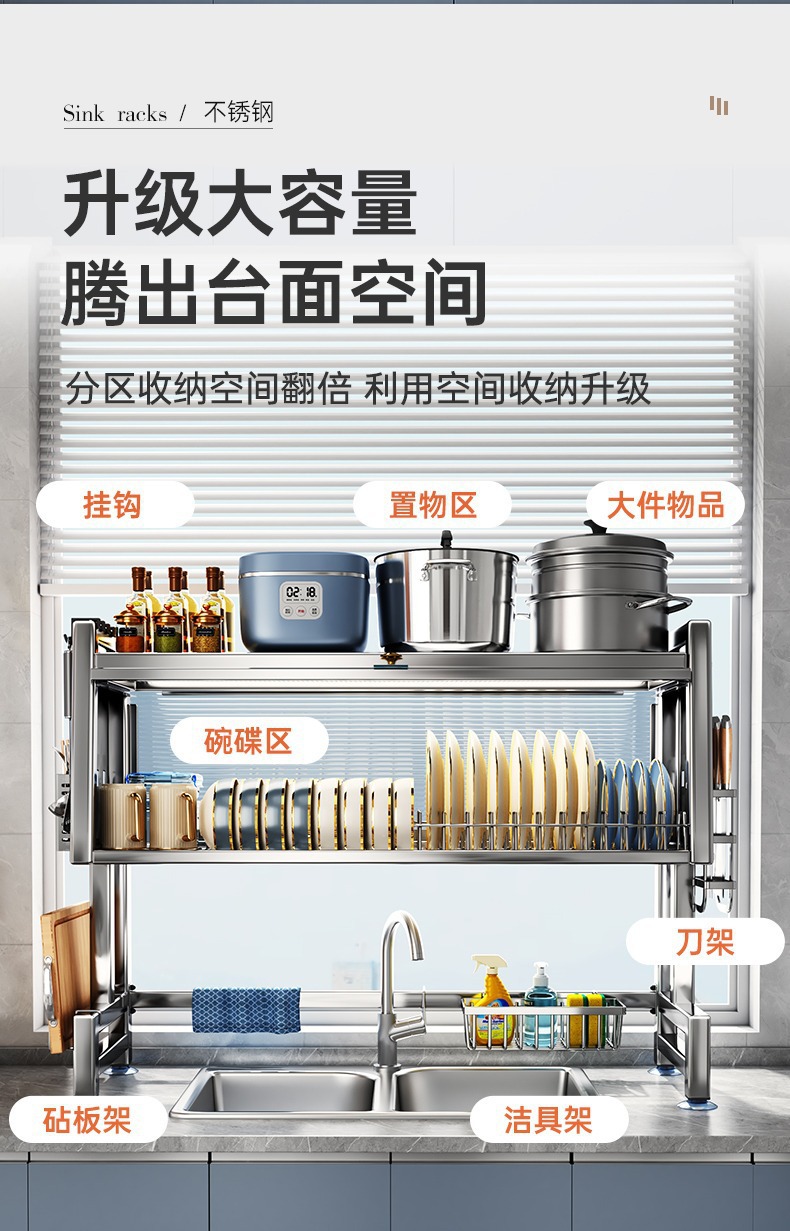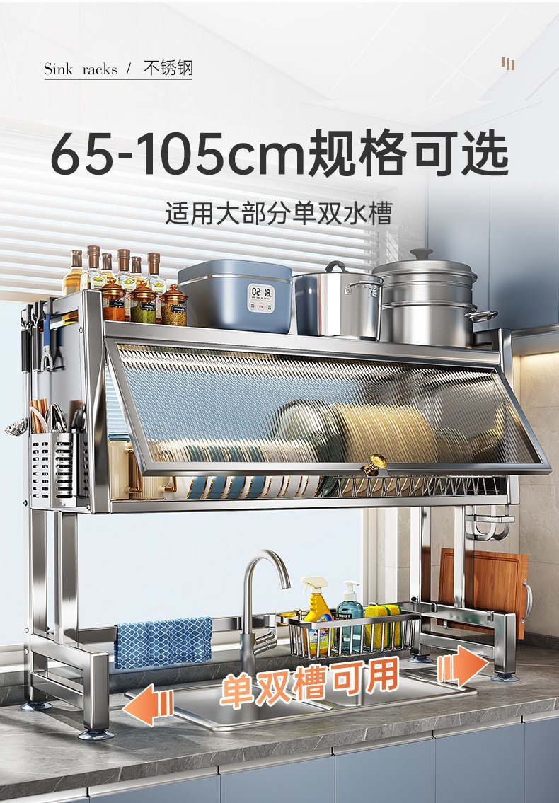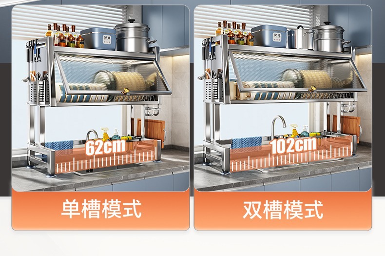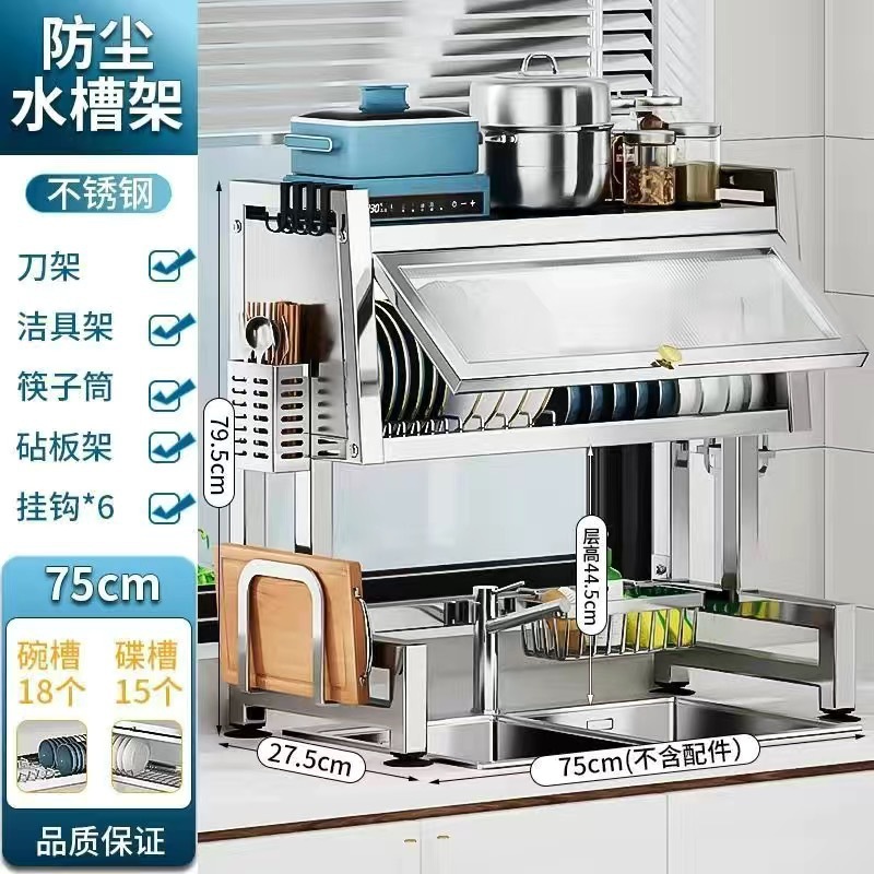 스테인레스 스틸 주방 캐비닛 도어 스토리지 랙 다기능 드레인 랙 싱글 및 더블 싱크 랙 보울과 젓가락 식기 그릇 및 접시 보관 랙스토어 가기