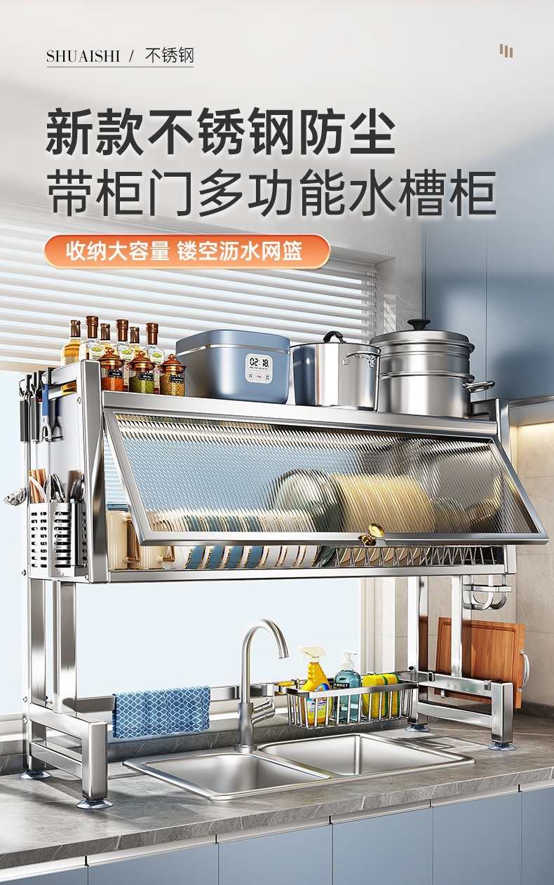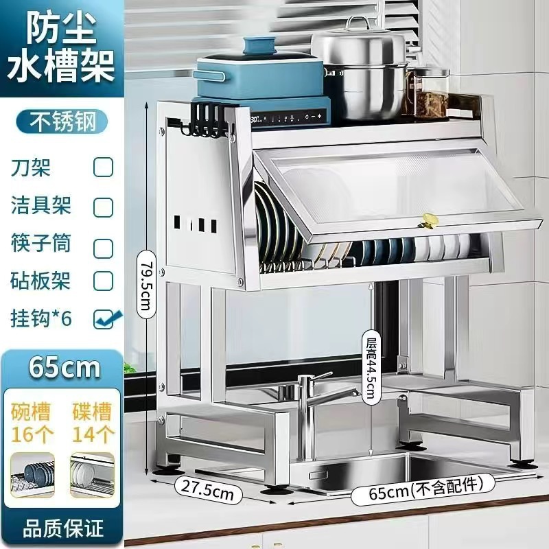 스테인레스 스틸 주방 캐비닛 도어 스토리지 랙 다기능 드레인 랙 싱글 및 더블 싱크 랙 보울과 젓가락 식기 그릇 및 접시 보관 랙
