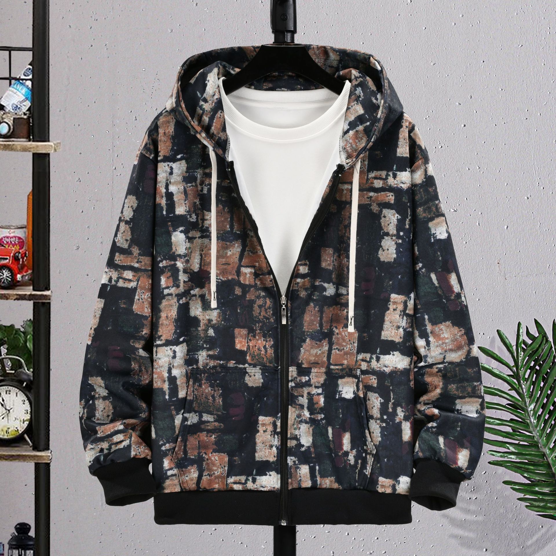 2024 새로운 지퍼 카디건 후드 남성 봄과 가을 패션 브랜드 미국 스타일 플러스 사이즈 캐주얼 스포츠 자켓