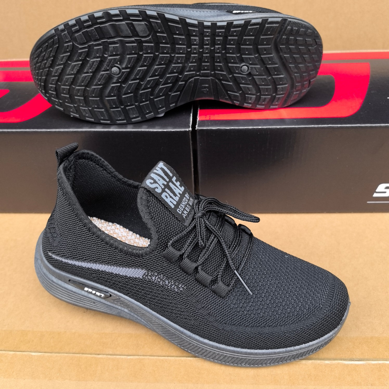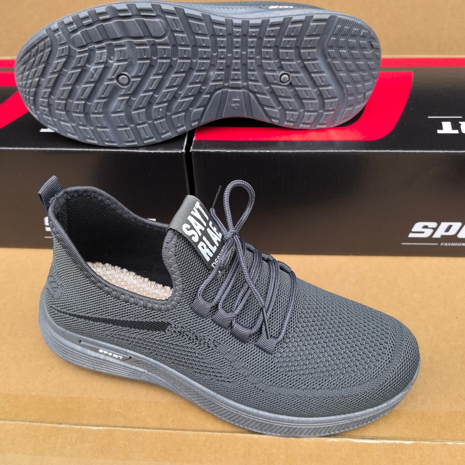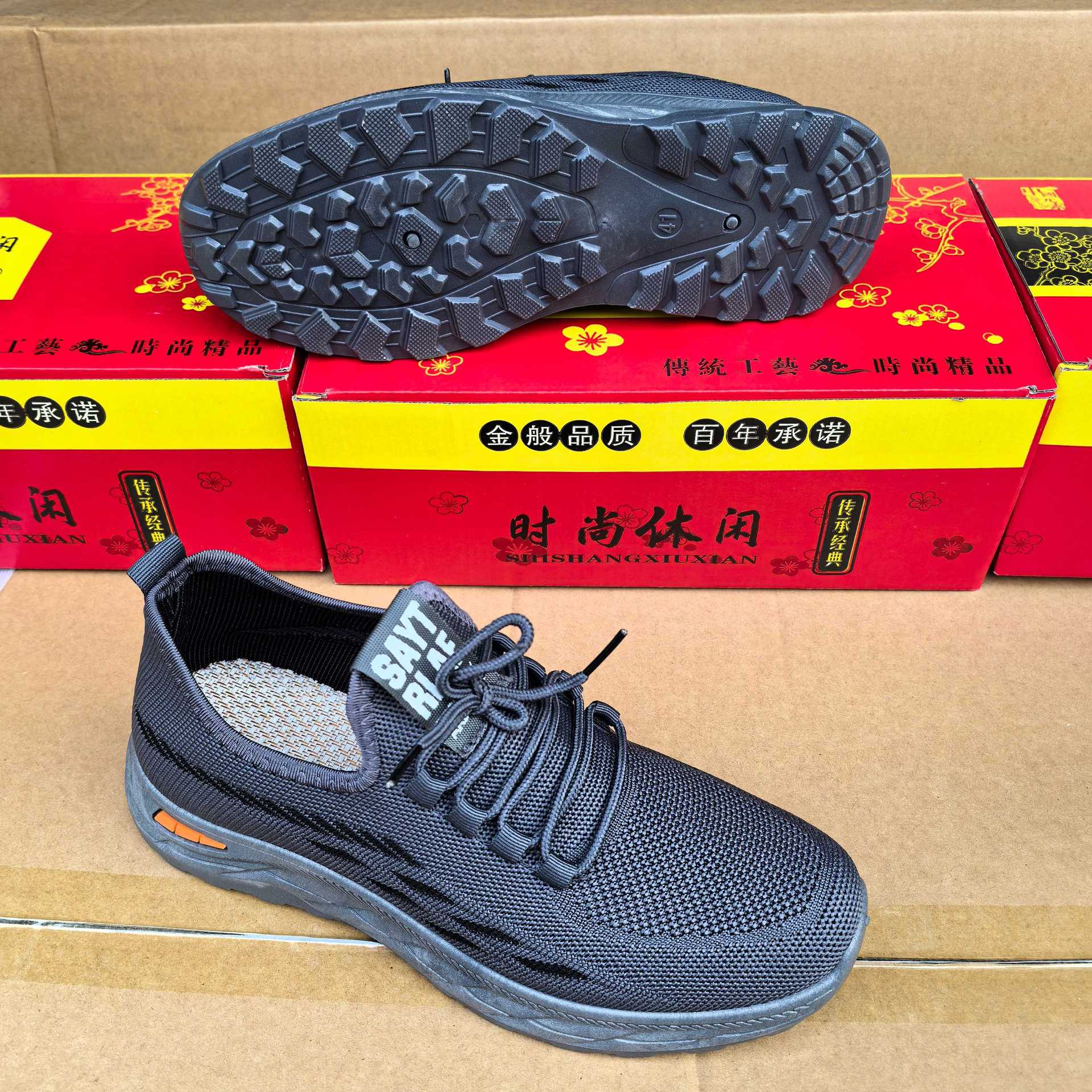 20024 봄과 가을 새로운 비행 직조 및 스폰지 프론트 레이스 남성 운동화 두꺼운 부드러운 바닥 재고 캐주얼 남성 신발스토어 가기