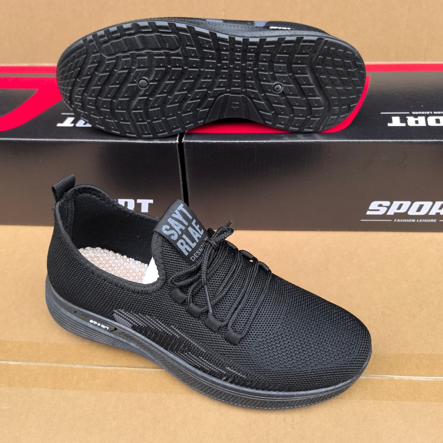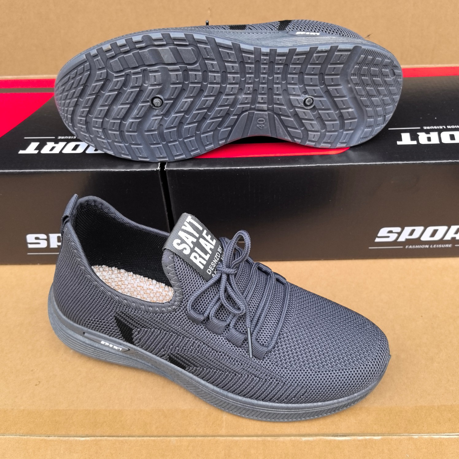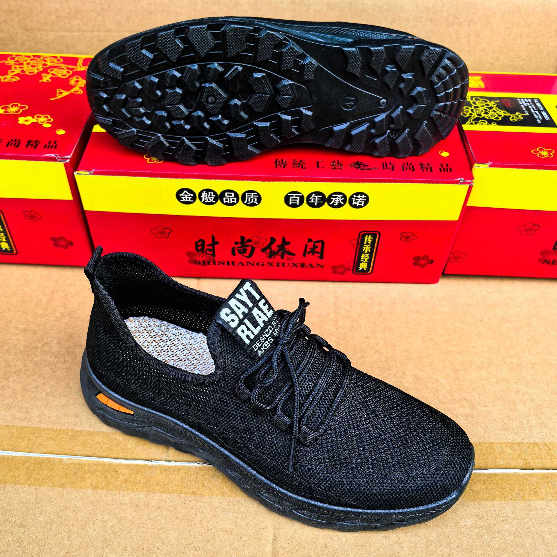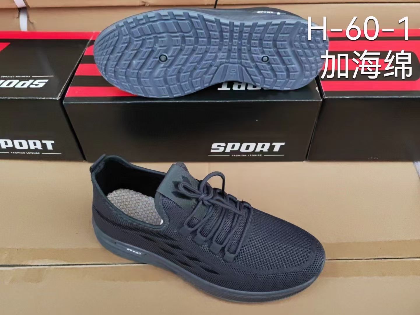 20024 봄과 가을 새로운 비행 직조 및 스폰지 프론트 레이스 남성 운동화 두꺼운 부드러운 바닥 재고 캐주얼 남성 신발