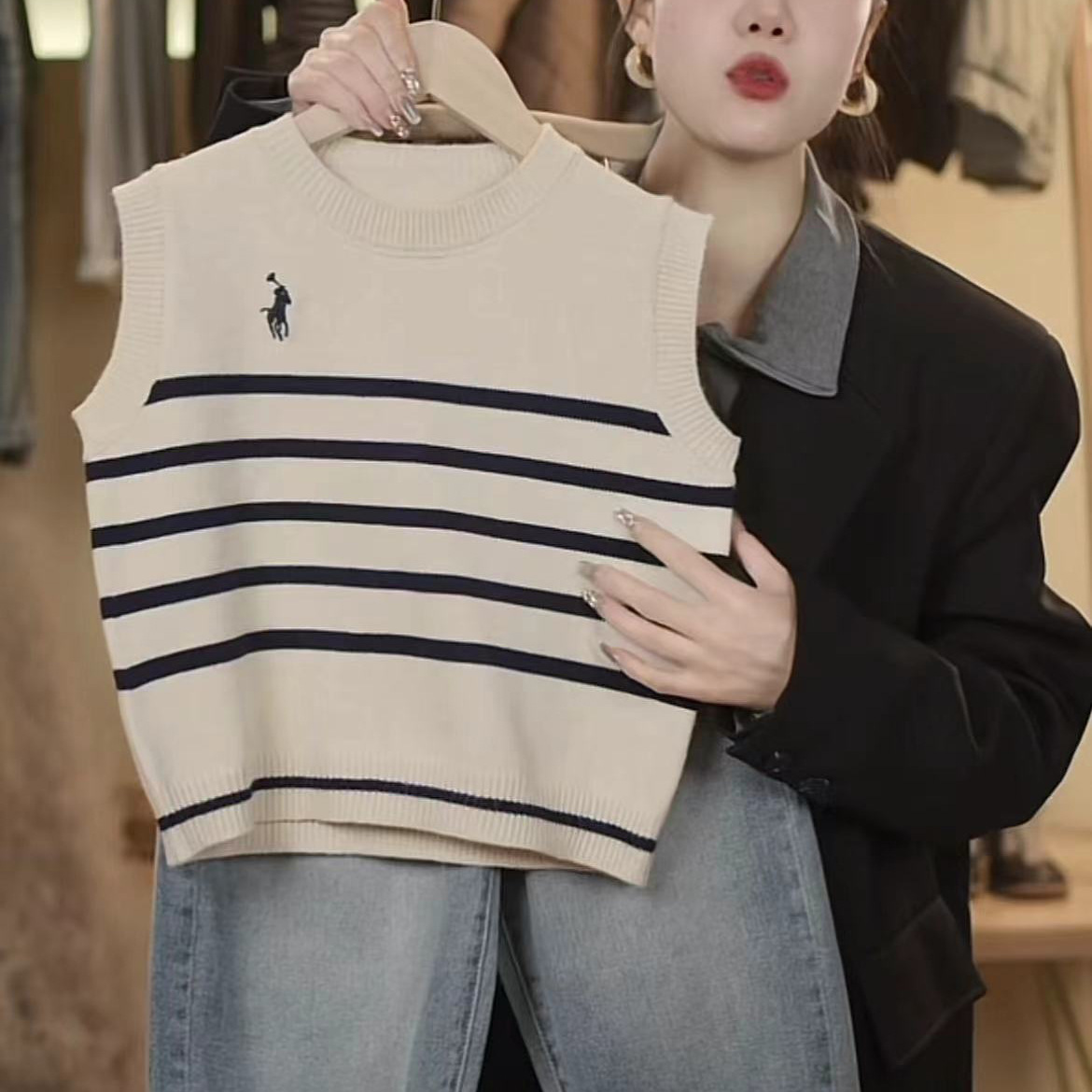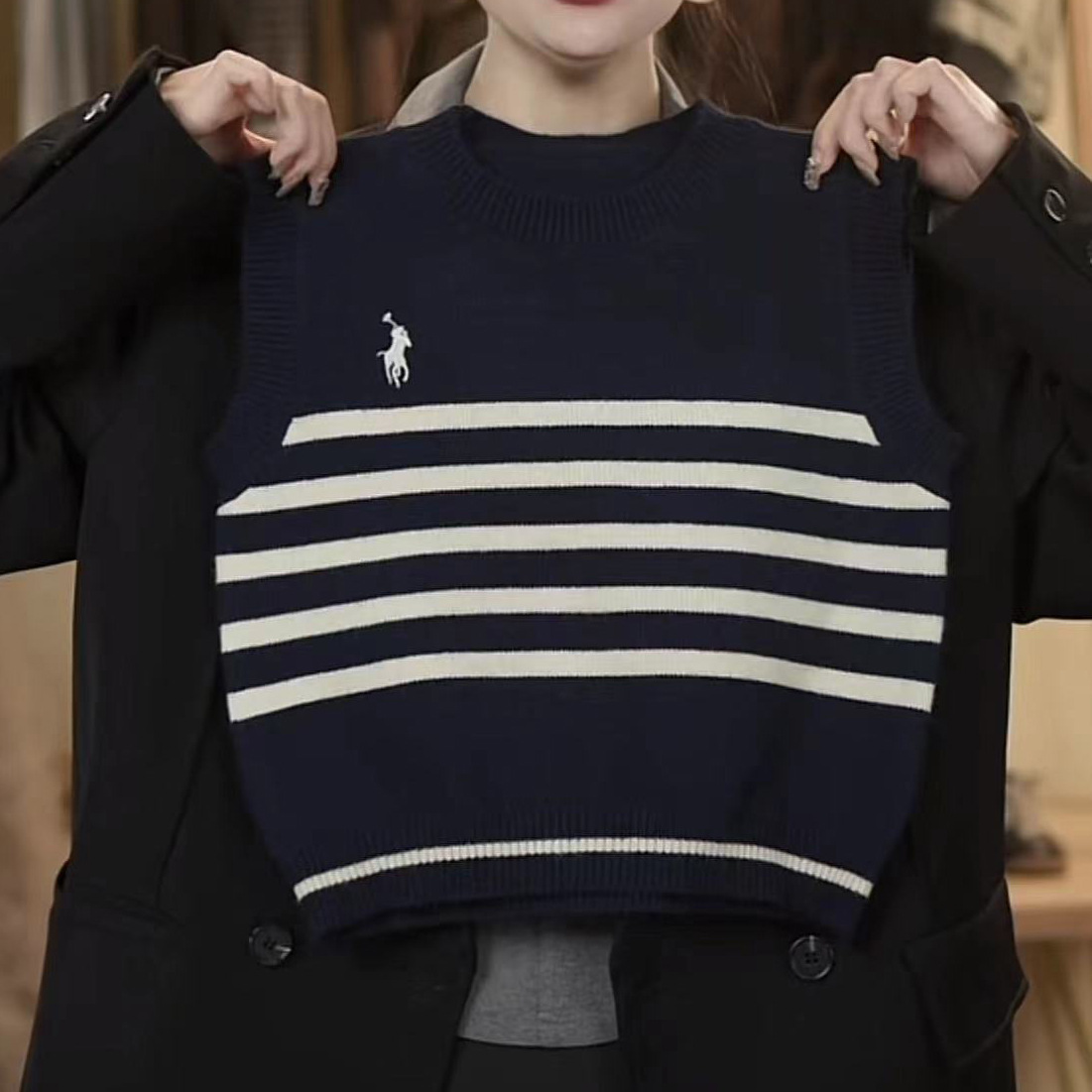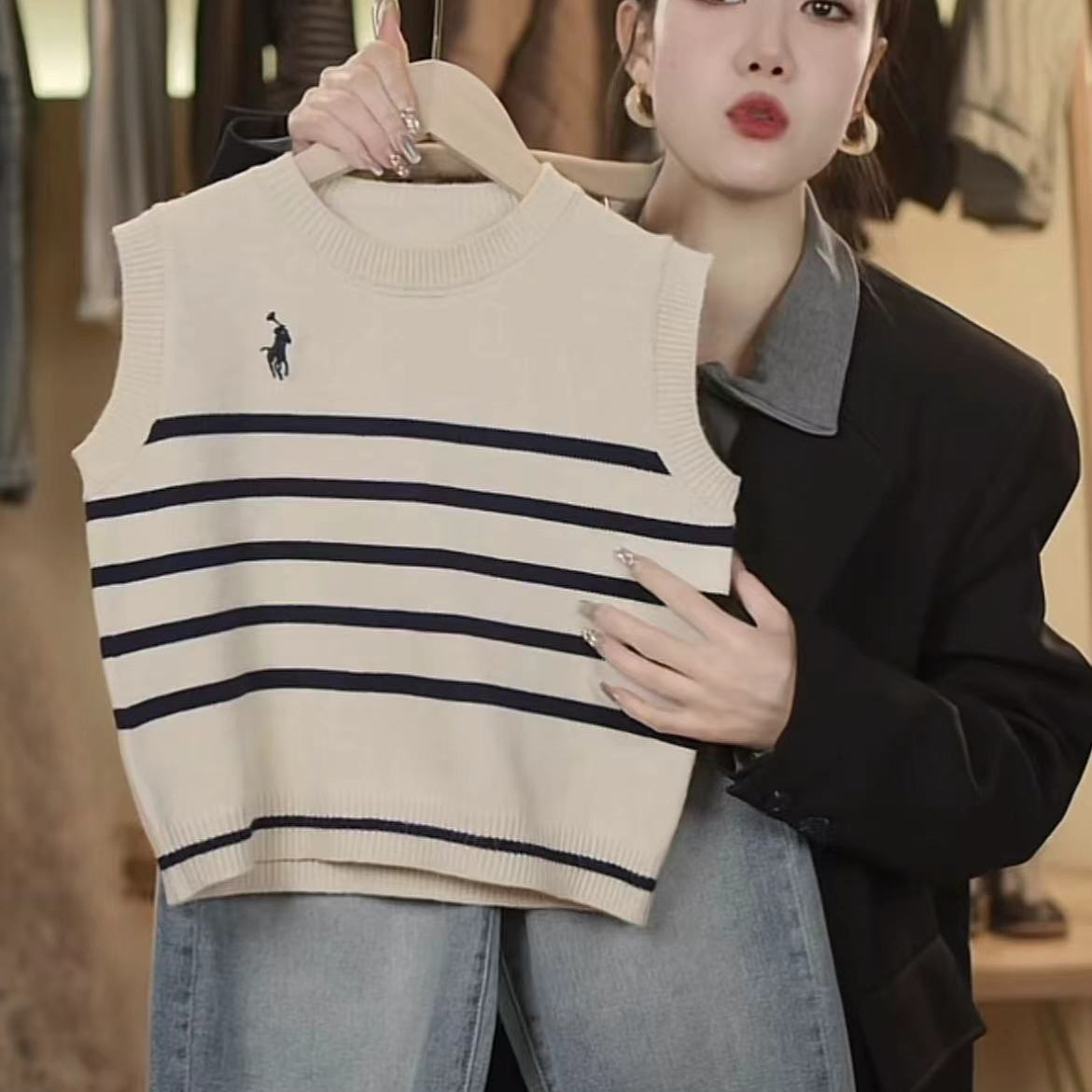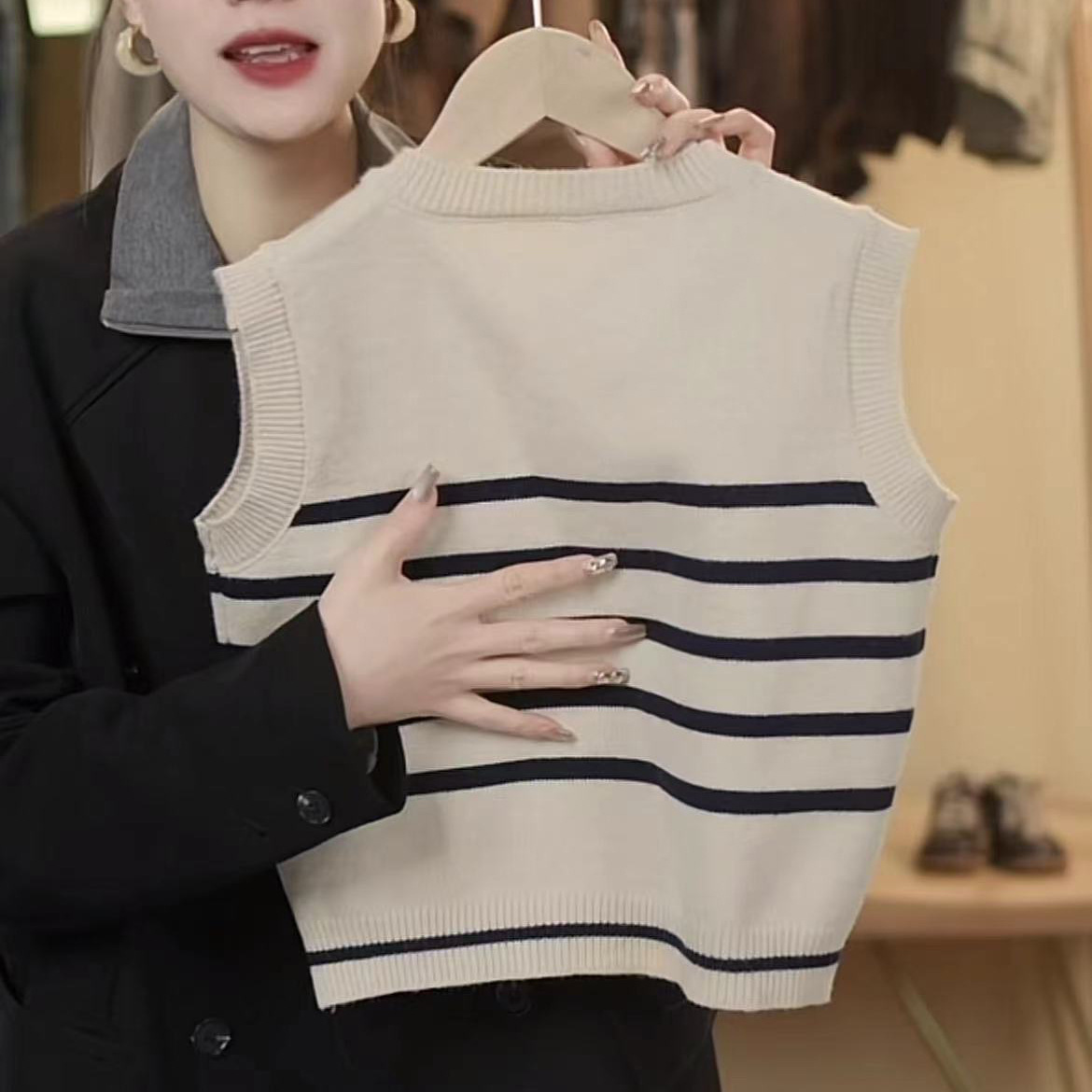 어린이 니트 조끼 봄과 가을 소년 2024 새로운 어린이 줄무늬 니트 스웨터 베이비 스웨터 조끼 여성 서양식스토어 가기