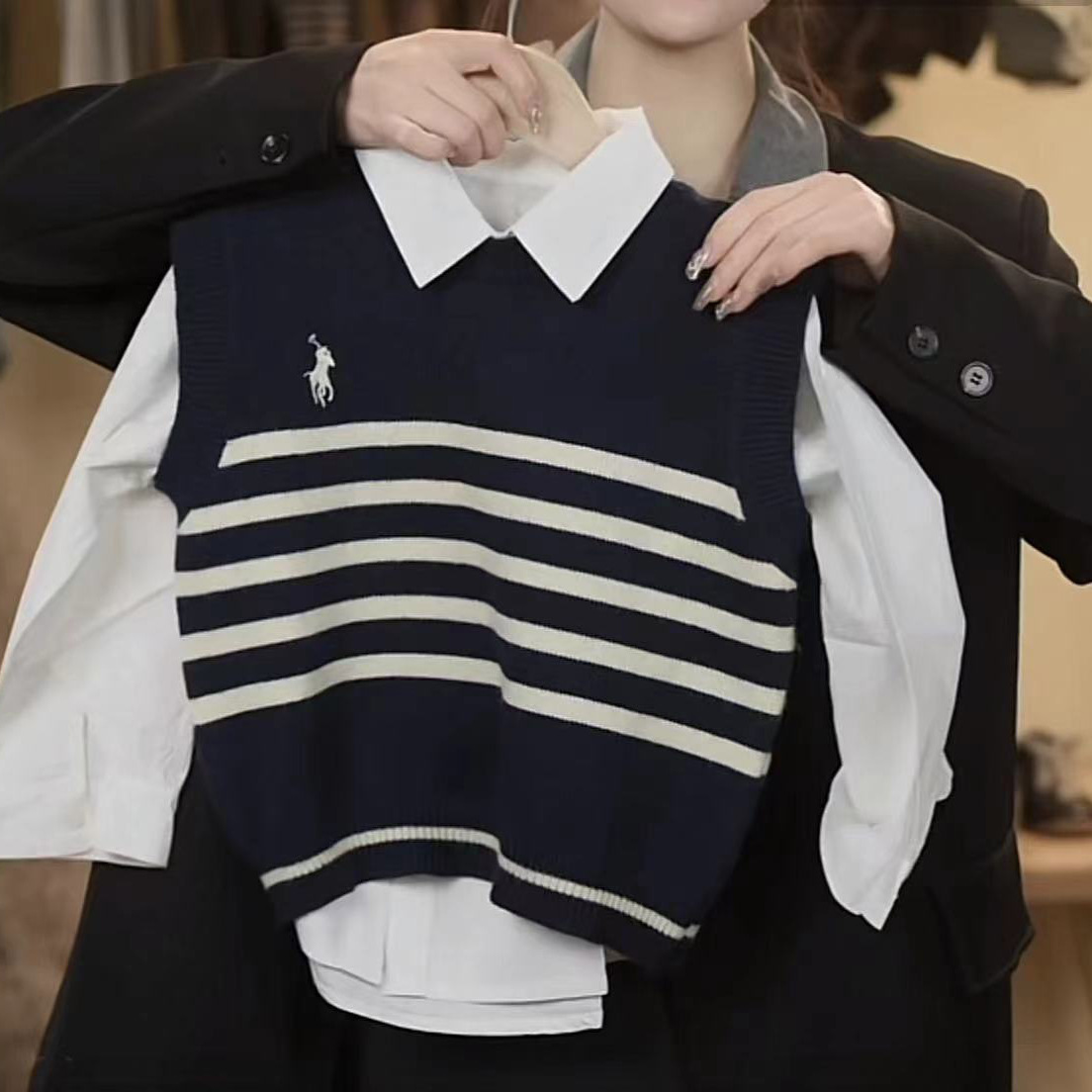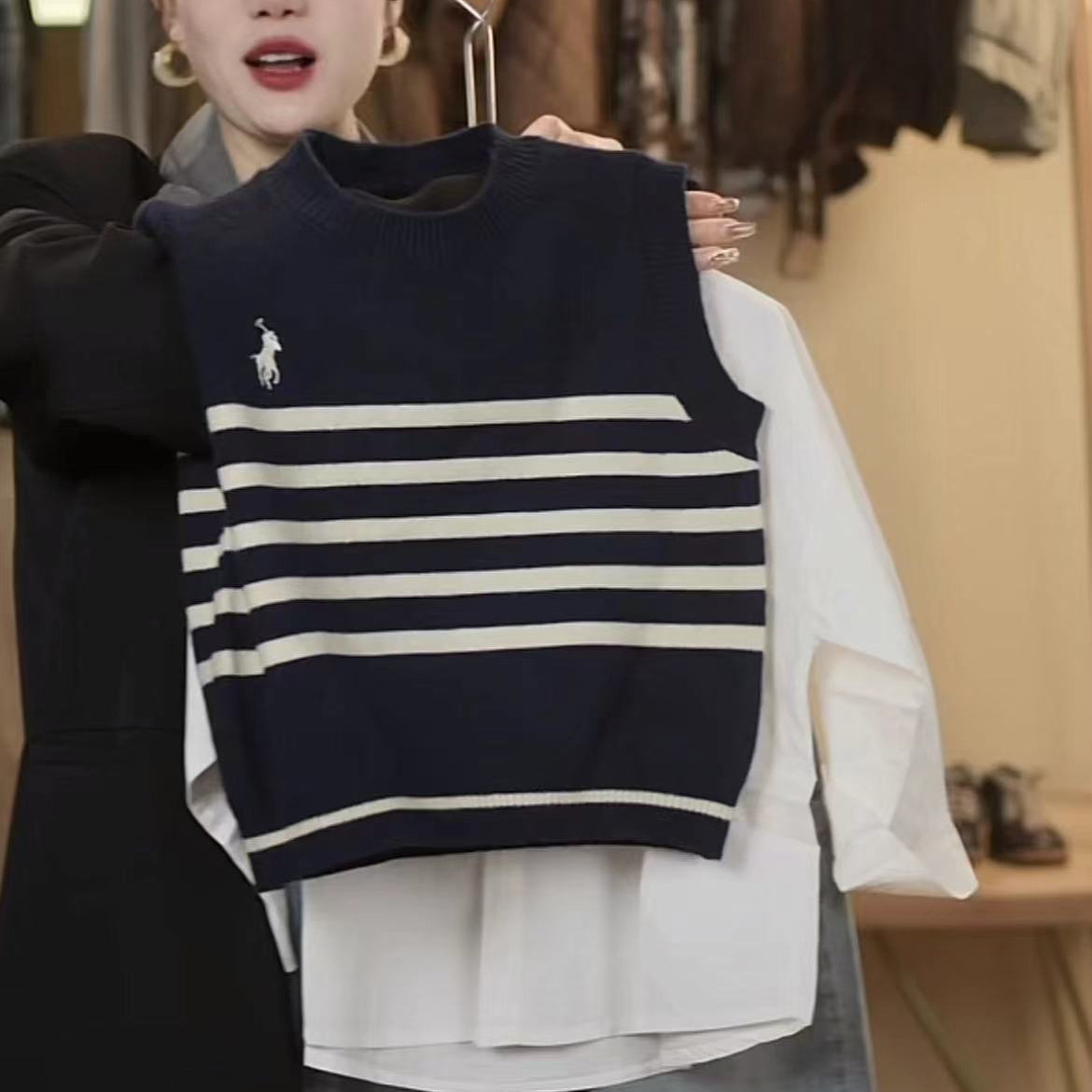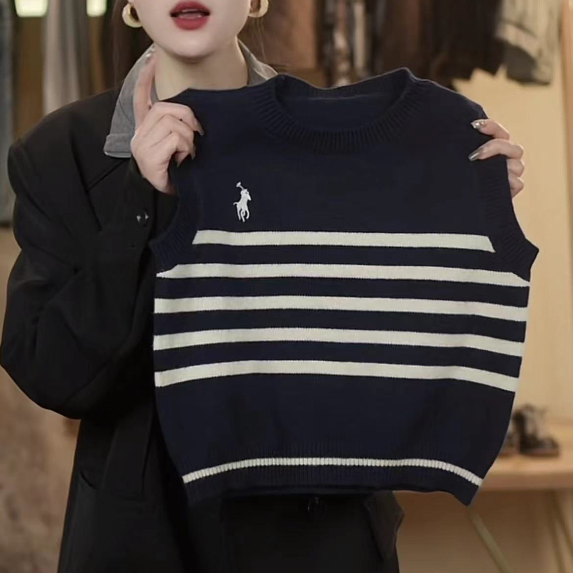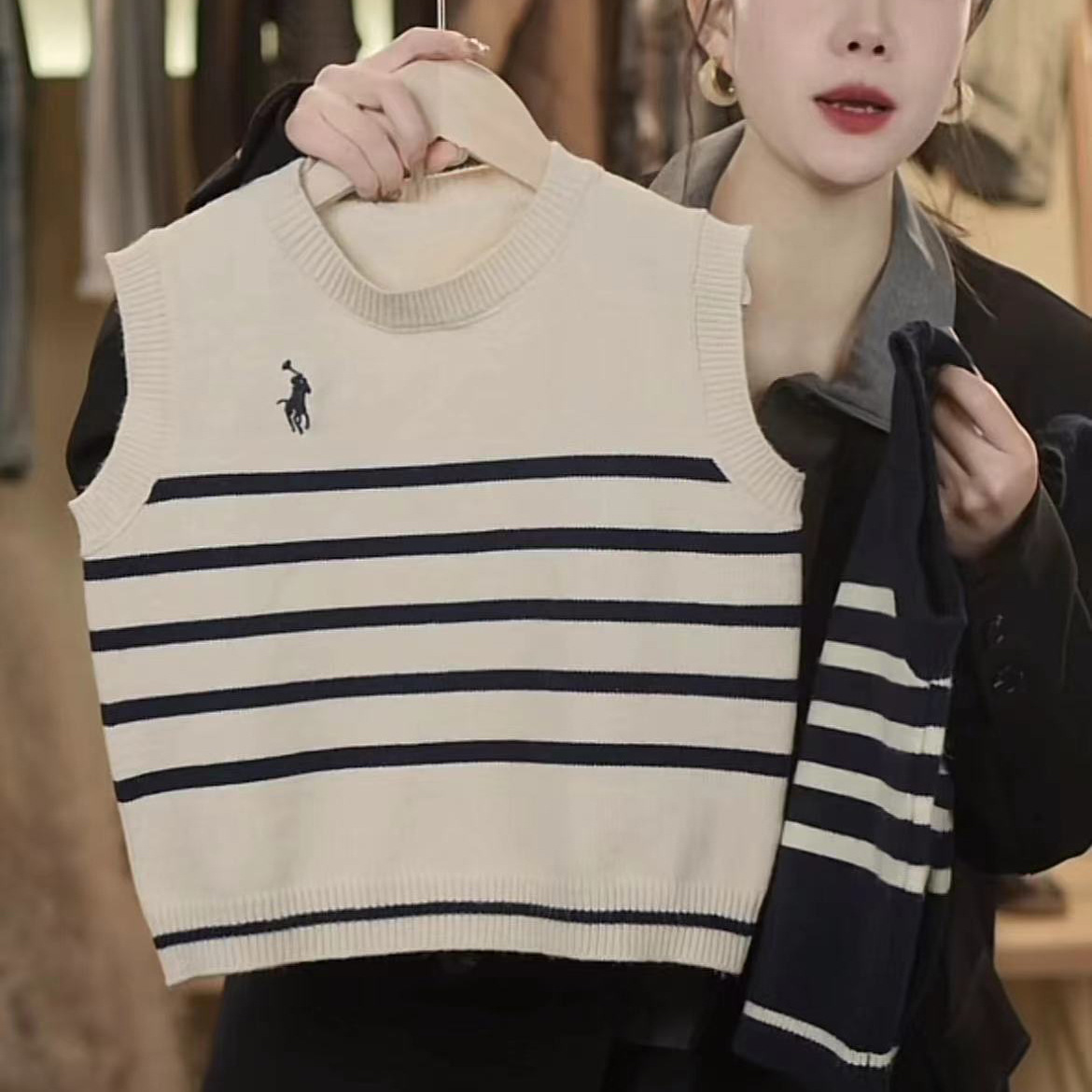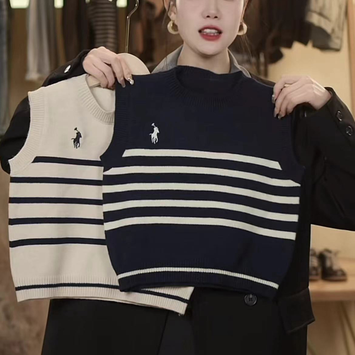 어린이 니트 조끼 봄과 가을 소년 2024 새로운 어린이 줄무늬 니트 스웨터 베이비 스웨터 조끼 여성 서양식스토어 가기