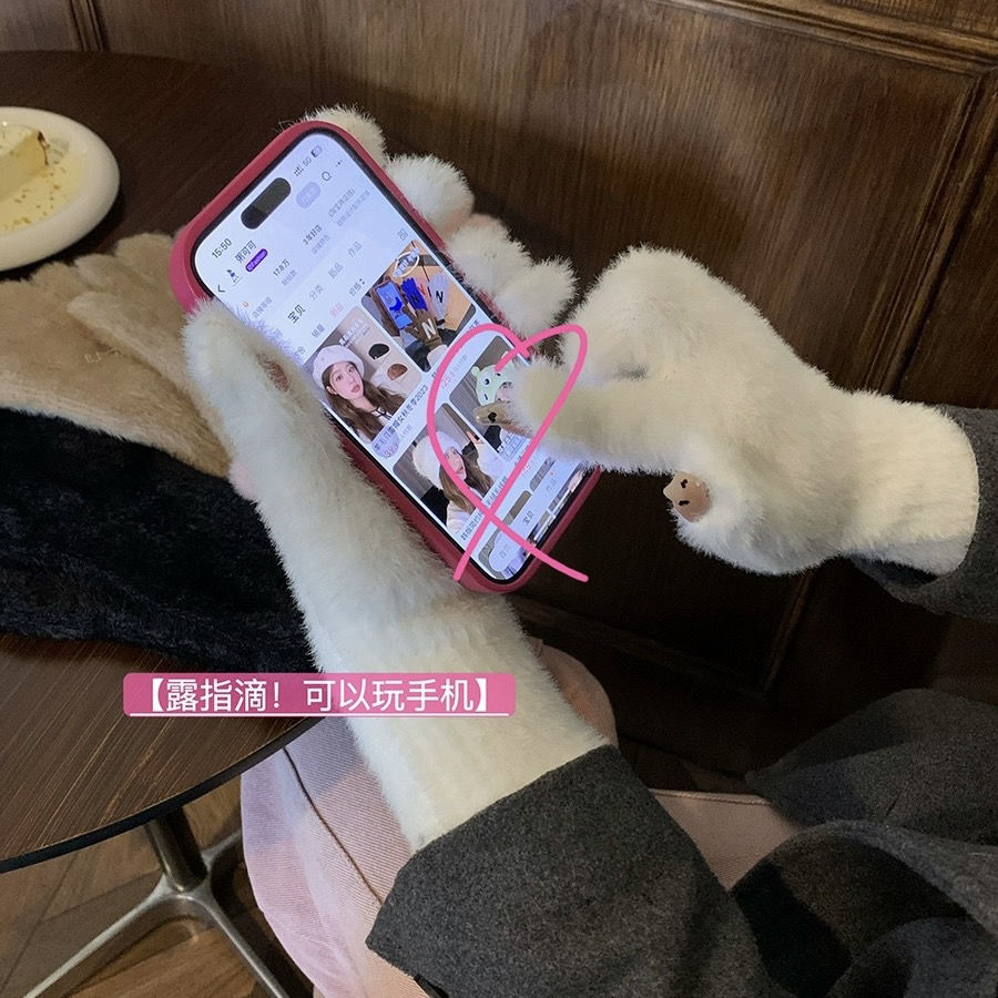 한국판 인 겨울 장갑 여성의 따뜻한 열린 손가락 터치 스크린 재생 휴대 전화 털복숭이 학생들이 차가운 라이딩 조수를 쓴다스토어 가기