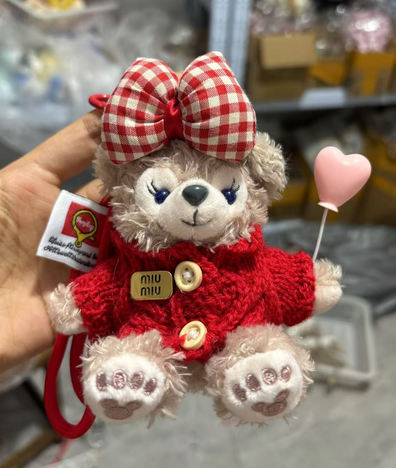 샤오홍슈 인형과 같은 스타일의 셜리 봉제 인형, 귀여운 더피 베어 인형, 자동차 키체인, 여자아이들을 위한 장식품