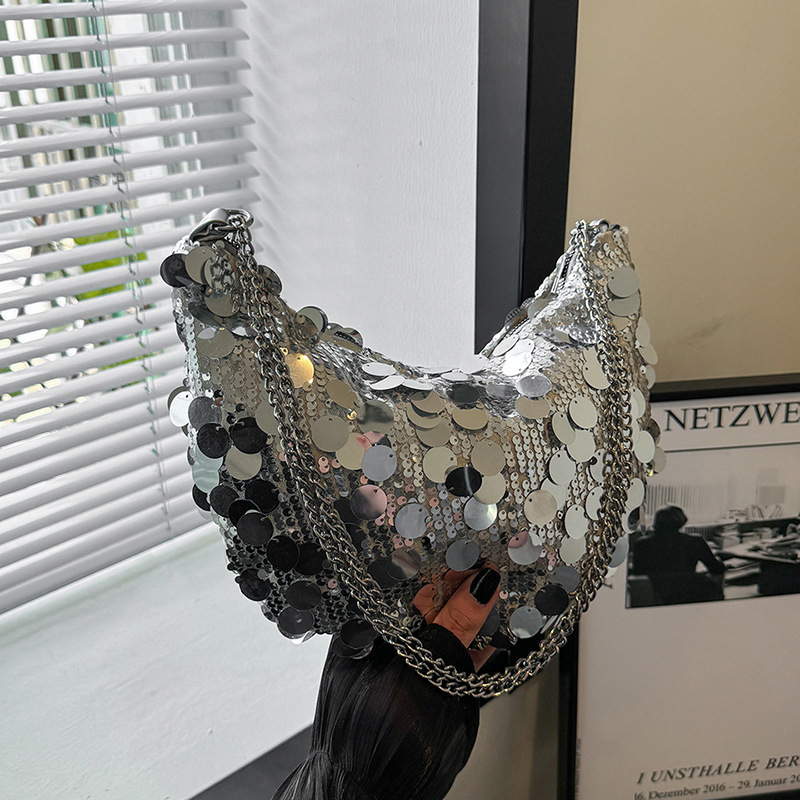 Sequin Bag 여성용 2024 새로운 도착 어깨 가방 트렌디 한 한국 스타일 세련된 틈새 독특한 체인 언더암 만두 백스토어 가기