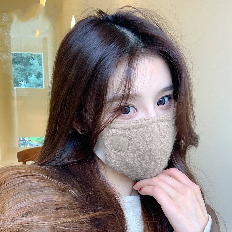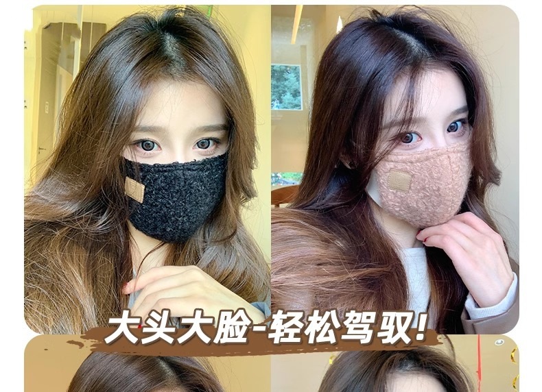 2025 겨울 여성용 입체 마스크, 작은 얼굴, 고급스러운 벨벳, 패셔너블하고 따뜻하며 방풍, 테디 벨벳, 야외 방한스토어 가기
