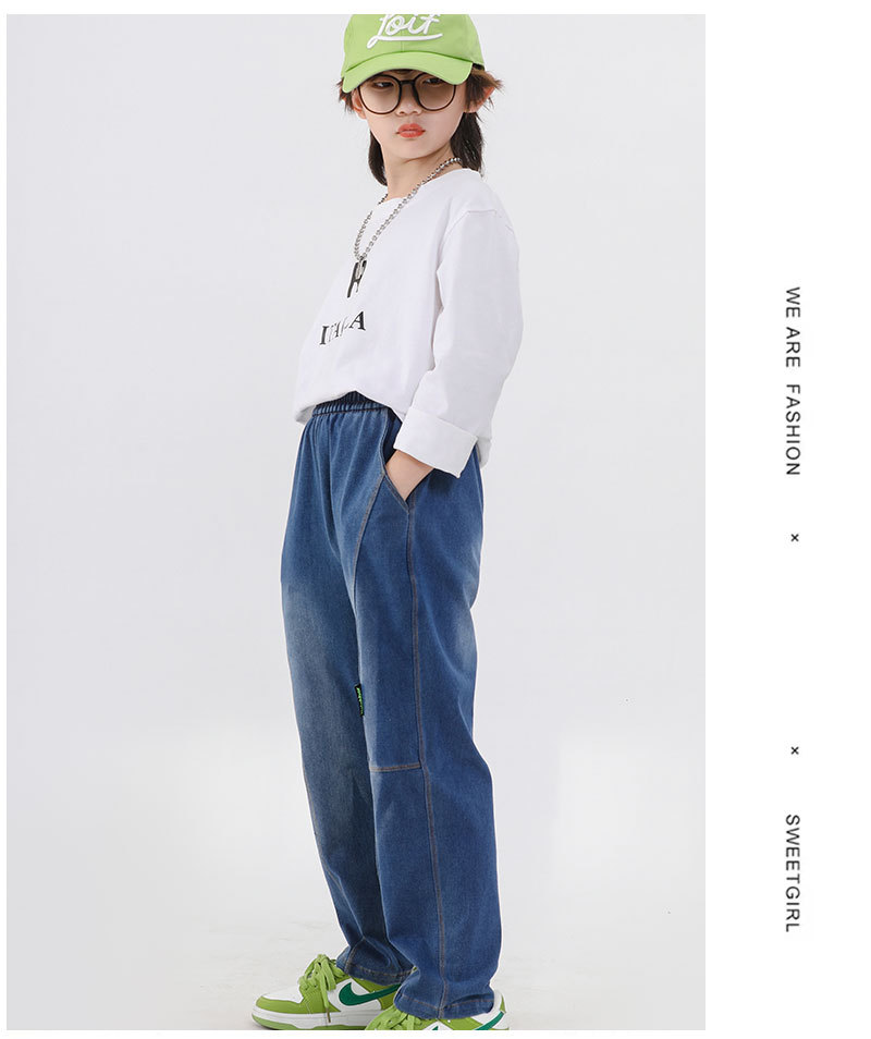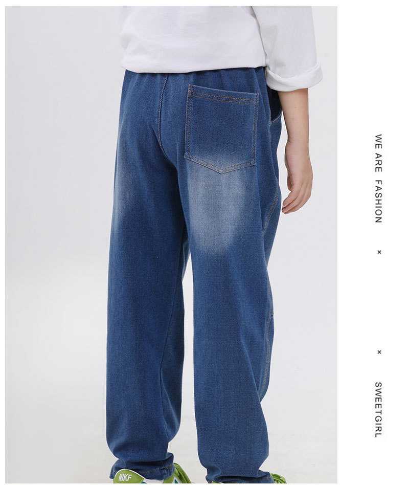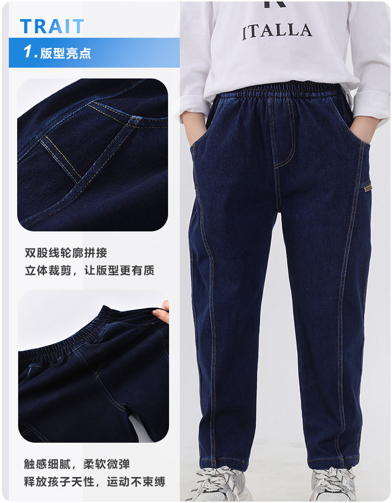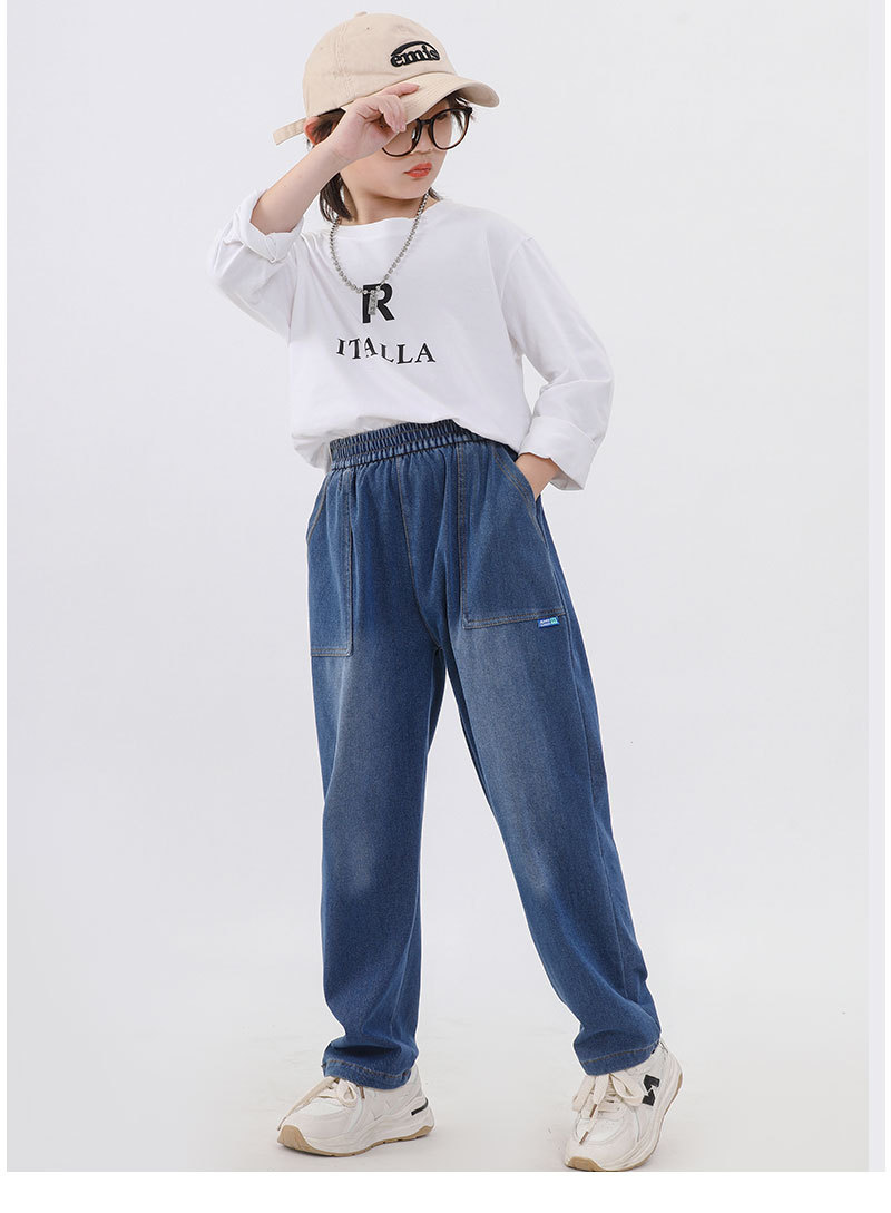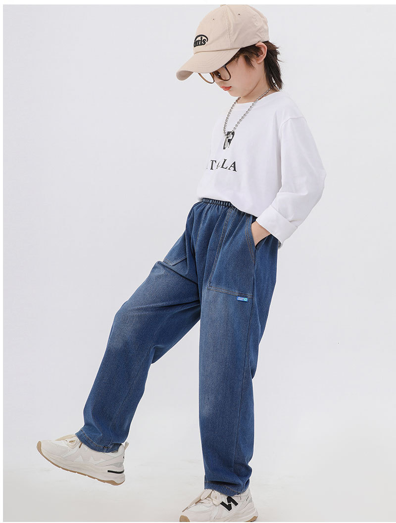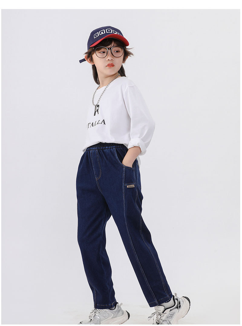 소년 청바지 아동복 봄, 가을 2024 새로운 소년 겉옷 바지 소녀 데님 캐주얼 바지 재고 있음 다용도