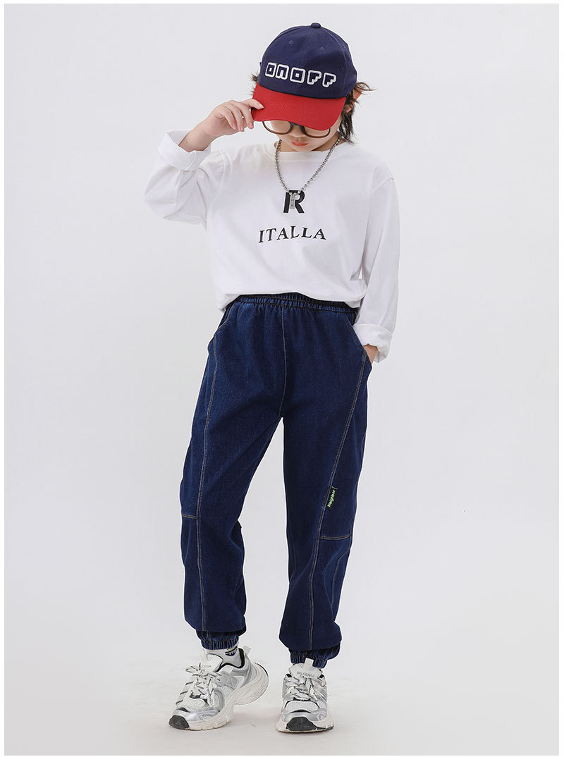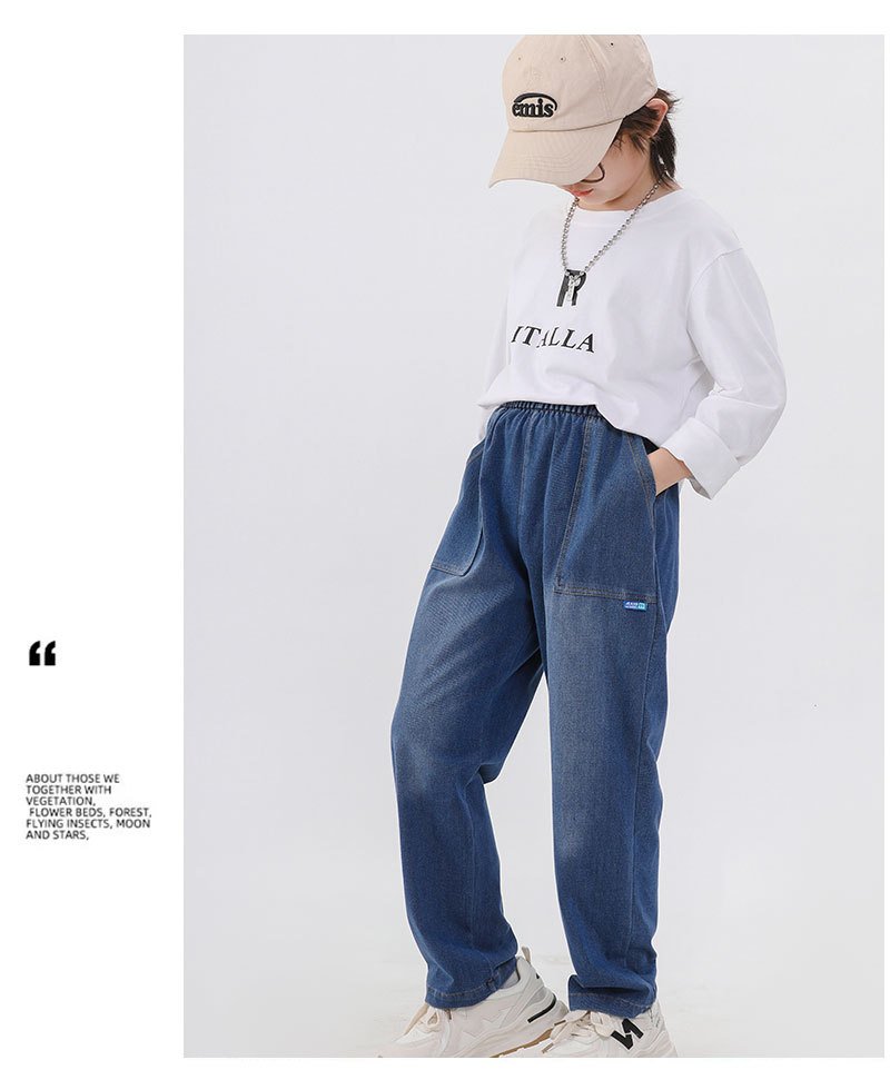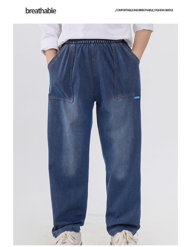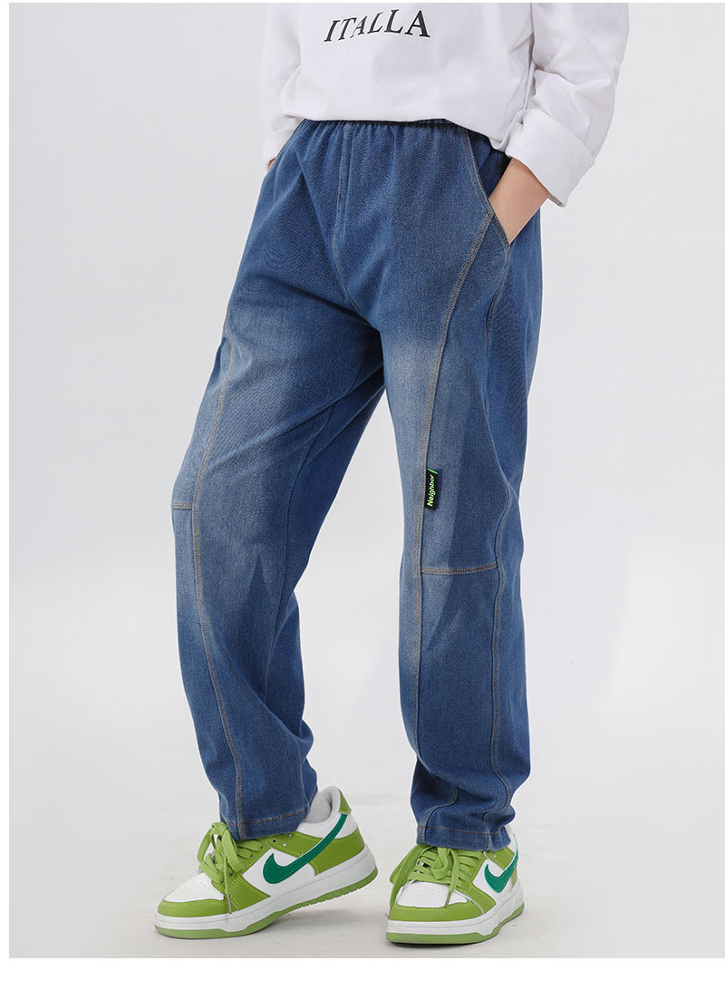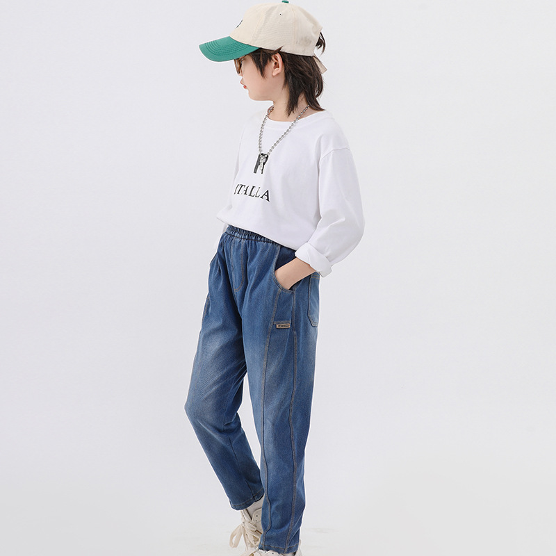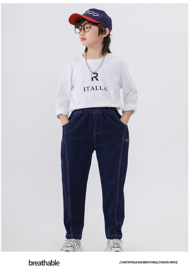 소년 청바지 아동복 봄, 가을 2024 새로운 소년 겉옷 바지 소녀 데님 캐주얼 바지 재고 있음 다용도