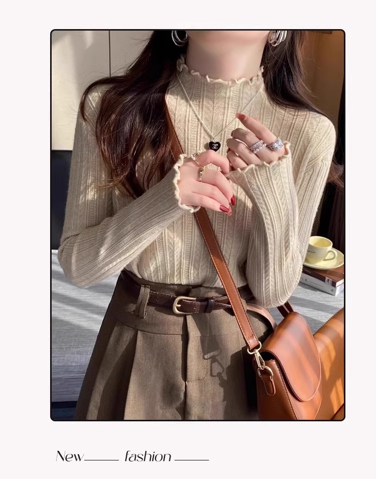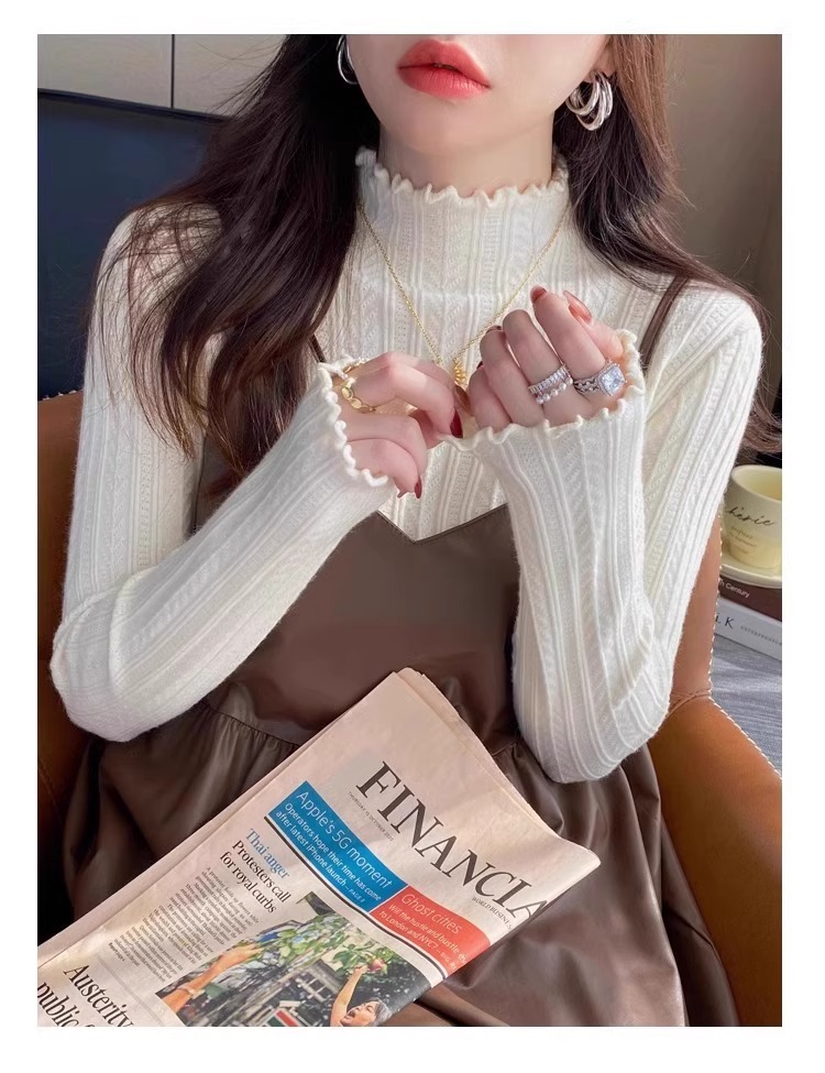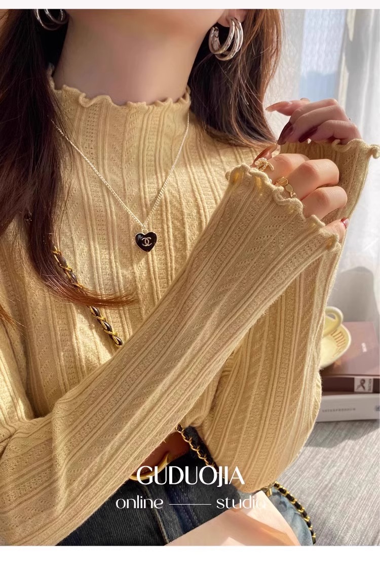 화이트 하프 터틀넥 스웨터베이스 셔츠 여성의 봄과 가을 내부 2024 새로운 디자인 센스 우드 이어 스웨터 탑