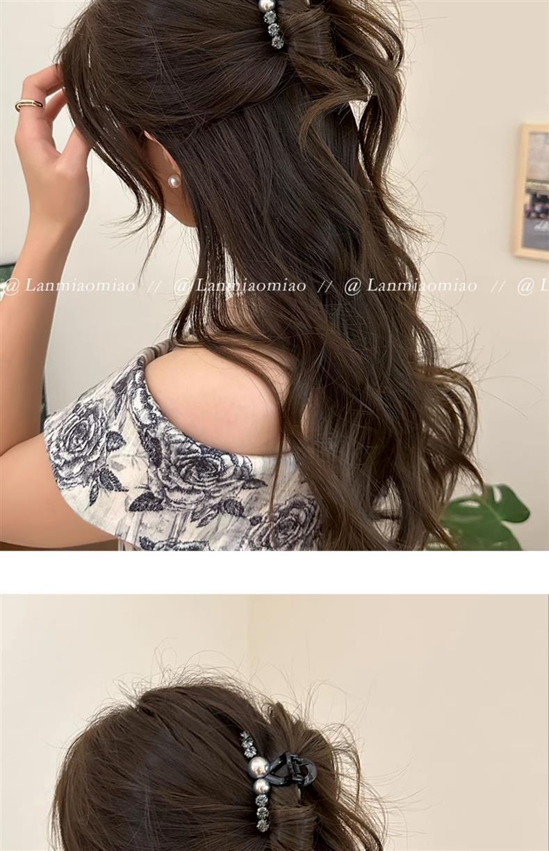 2024 한국 새로운 소형 클립 진주 고급 그랩 클립 중형 헤어핀 여성용 헤드웨어 하프 그랩 심플 클립