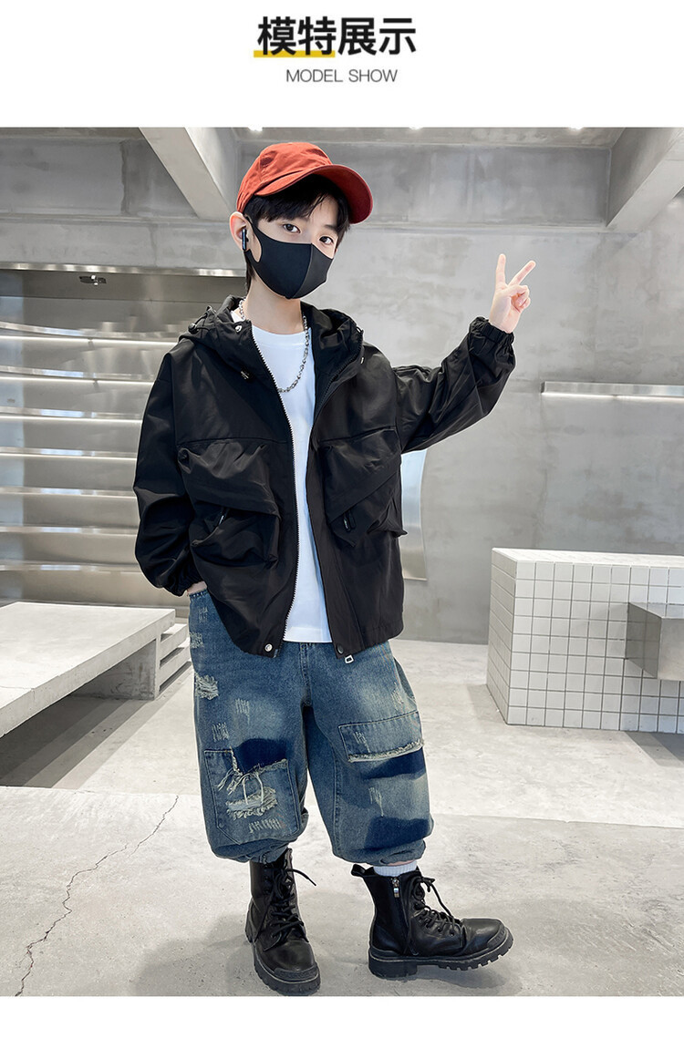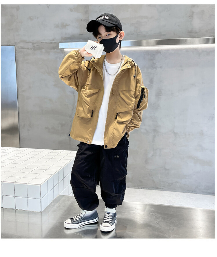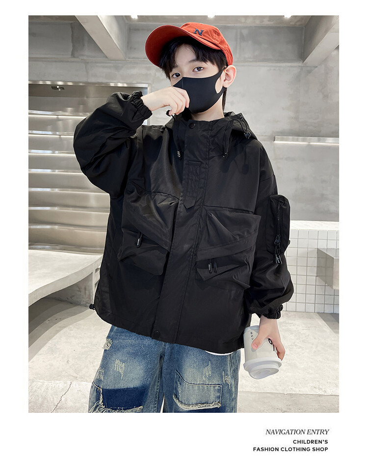 어린이 의류 소년 가을 코트 소년 충전 옷 조수 시원한 T18-bread 포켓 재킷