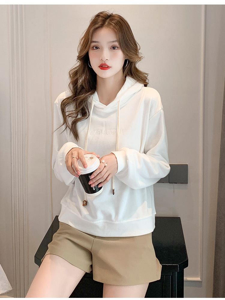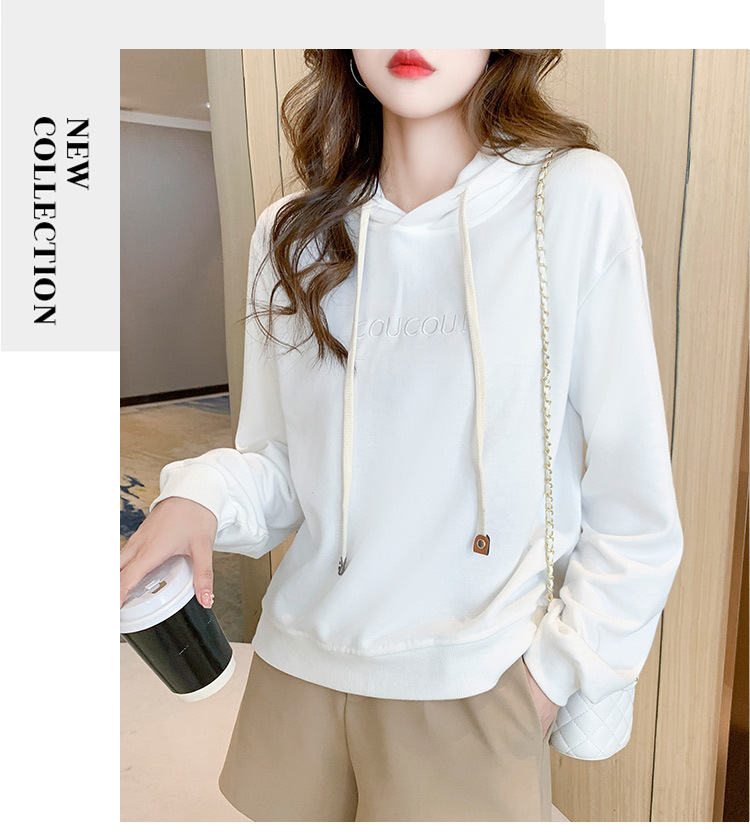 2024 리얼 샷 이른 가을 새로운 고밀도 문자 자수 올 매치 후드 긴 소매 drawstring 가을 스웨터